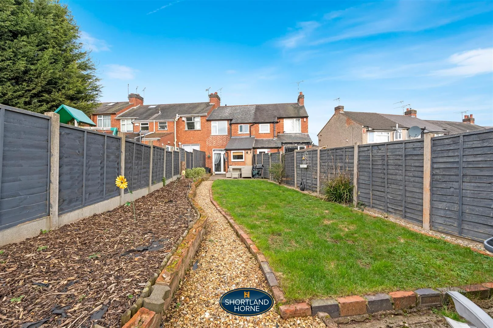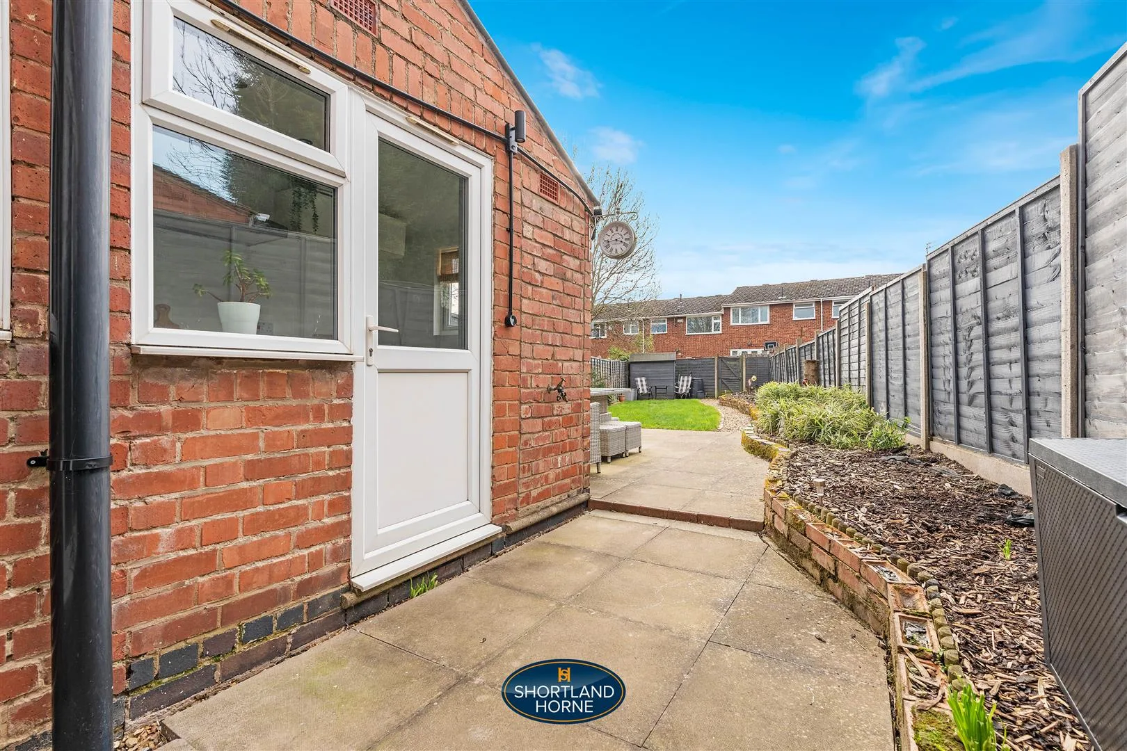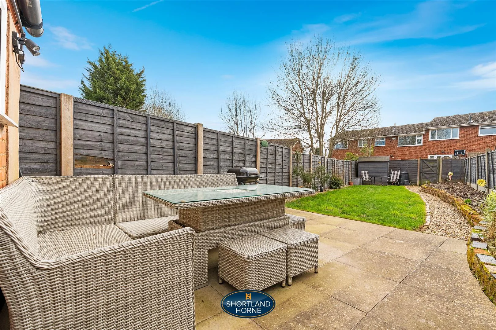 Step outside and the garden feels like a private sun trap. The slabbed patio is ideal for alfresco dining or a leisurely cup of coffee, while the lawn beyond offers space for children to play, pets to explore, or gardening projects to bloom. Modern fencing borders the garden, creating both privacy and style, and the sunny aspect ensures the space is enjoyed throughout the day.