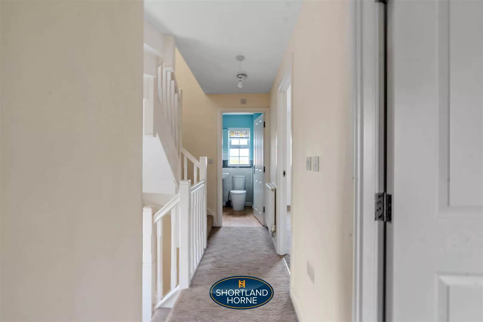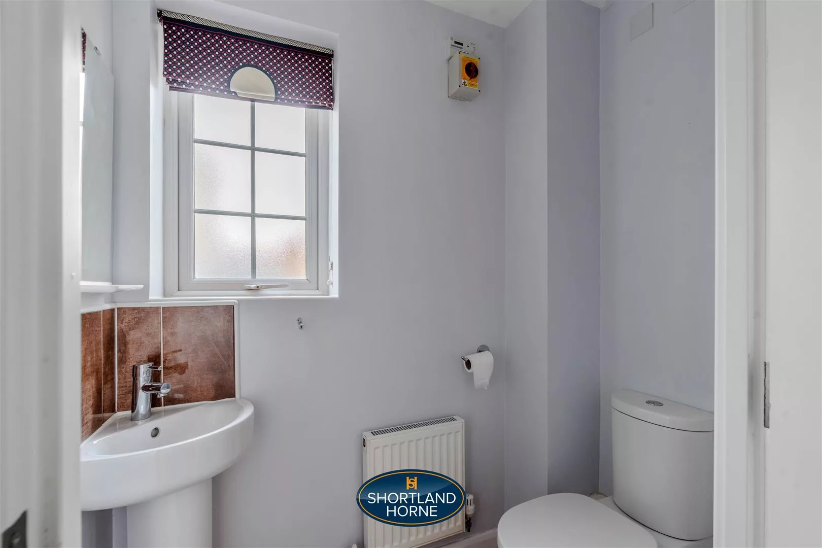 A convenient downstairs WC adds to the practical layout, ensuring daily life runs smoothly. Upstairs, carpeted stairs and landing lead to three generous bedrooms and a family bathroom. Bedroom two is particularly impressive with its own en-suite and built-in wardrobes, while bedrooms three and four offer versatile spaces for children, guests, or a home office. The family bathroom is fully tiled with a modern three-piece suite and shower over the bath, offering a bright and clean retreat.
