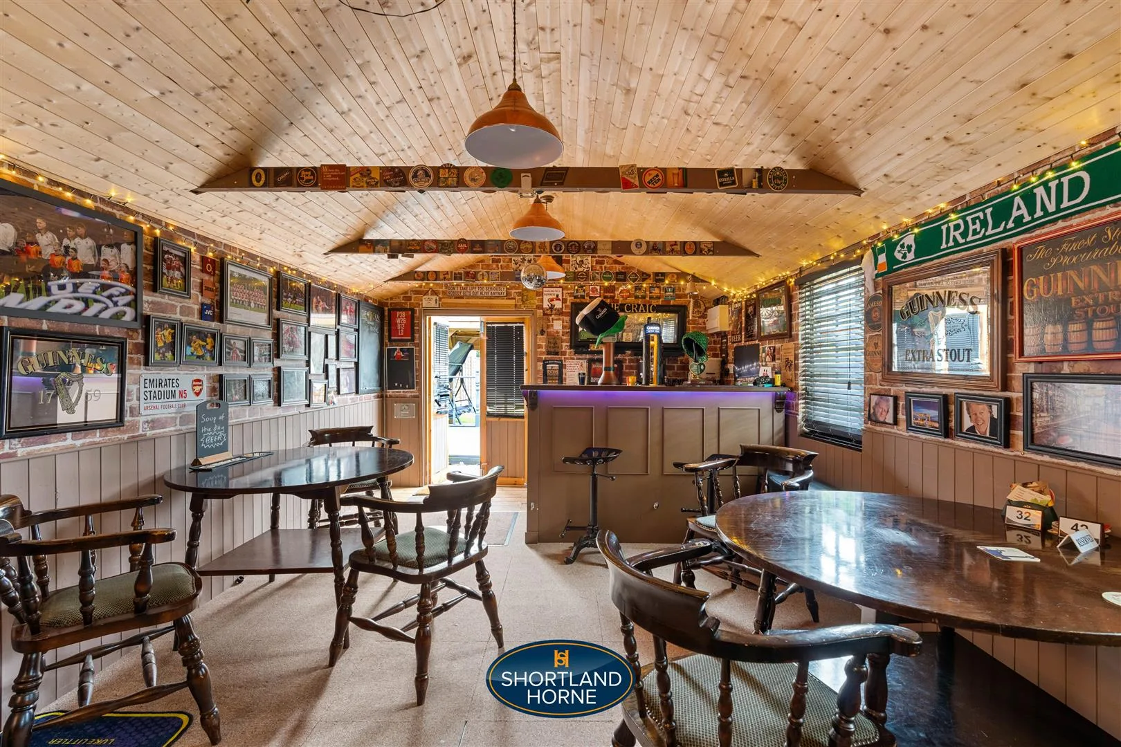 Lovingly styled as a traditional Irish bar, the summerhouse is fully wired for electrics and internet, perfect for lively evenings or relaxed weekends. Inside, you’ll find an actual bar, complete with seating, decor, and the atmosphere of your favourite local without leaving your garden. Whether you’re pouring a pint, watching the match, or hosting friends, this space is as impressive as it is inviting. It could also double as a home office, creative studio or gym, depending on how you choose to live.