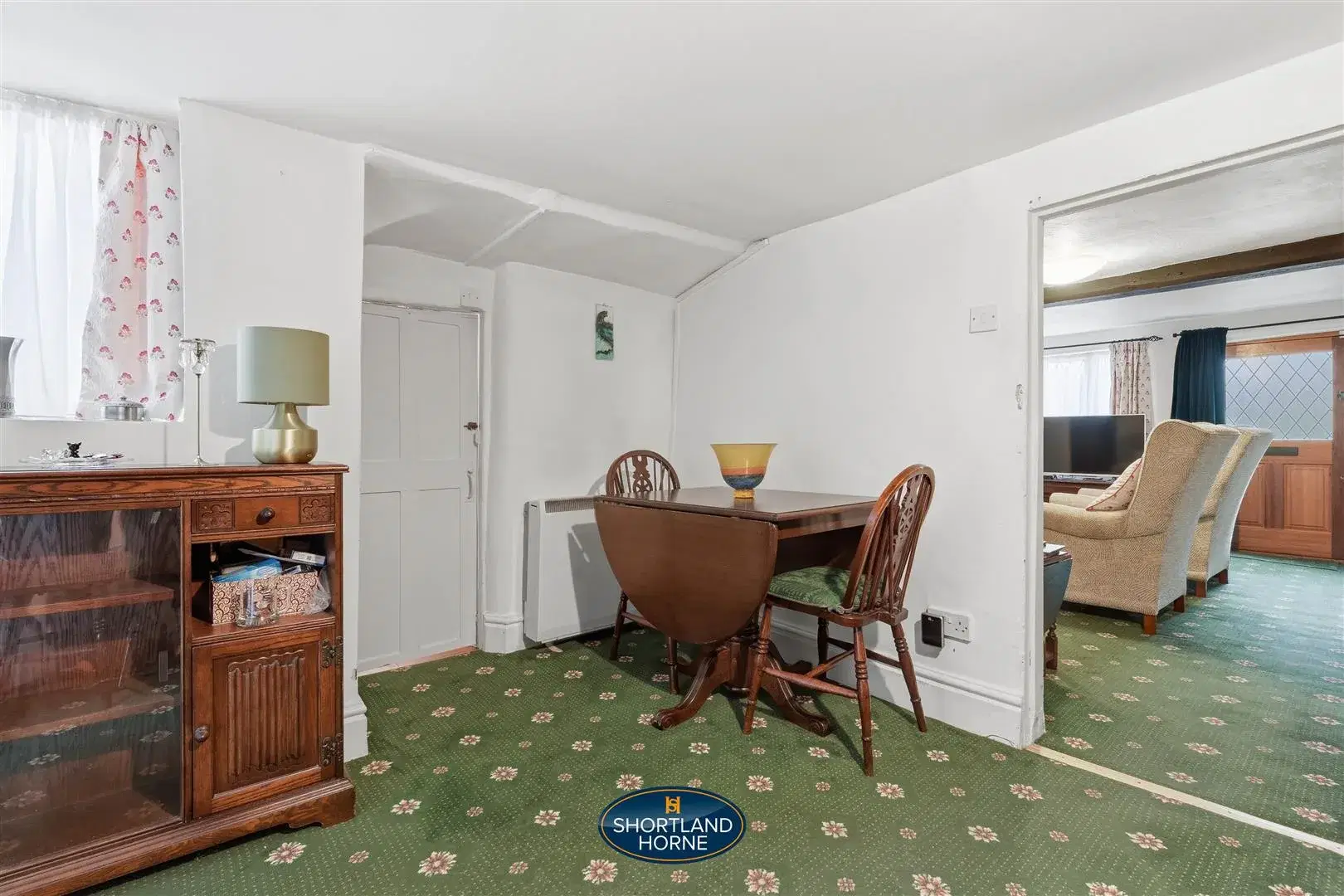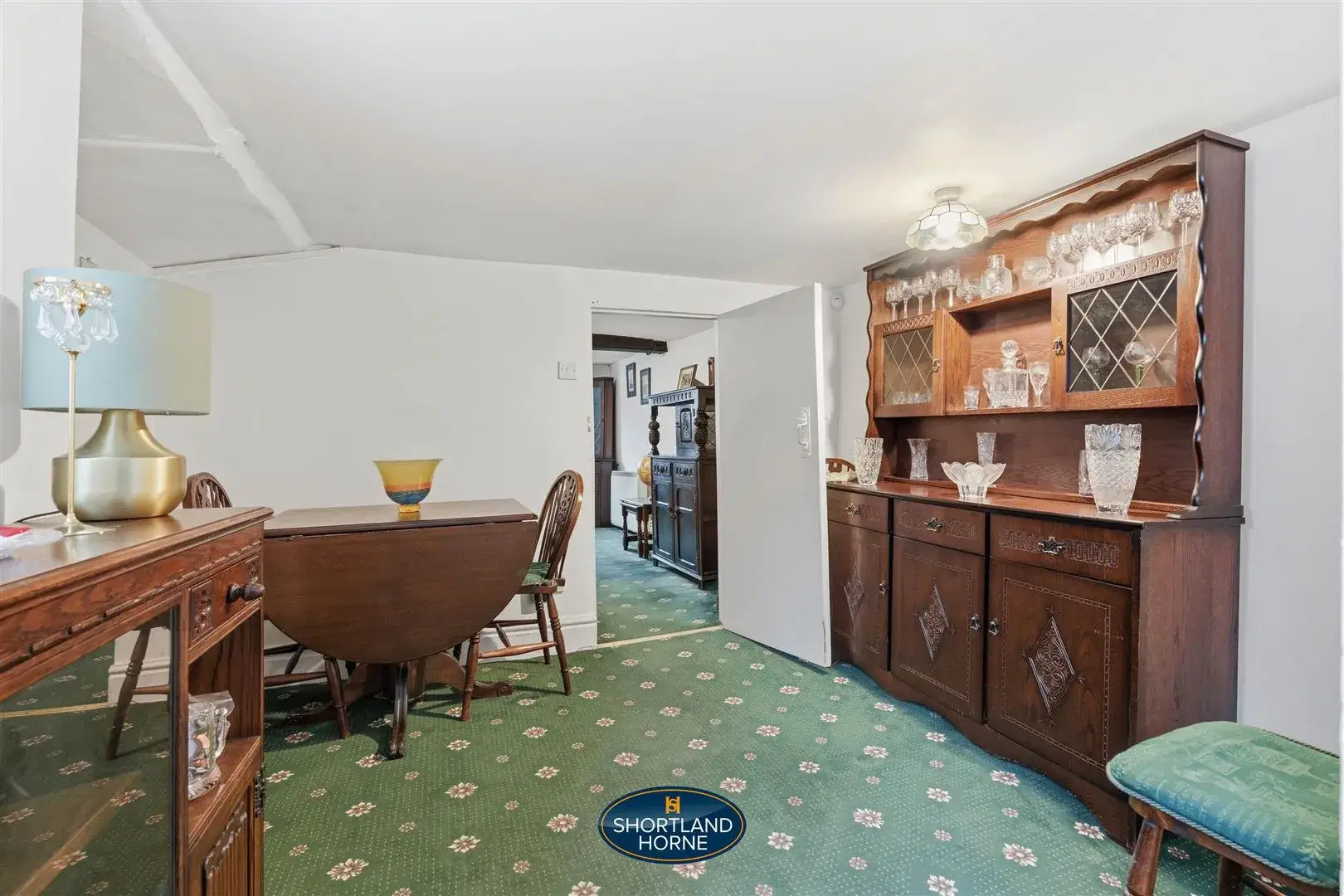 Beyond the lounge, the home continues to unfold with a dining room that provides a warm and comfortable setting for everyday meals or quiet evenings entertaining guests. The proportions are generous for a cottage of this era, offering flexibility for dining furniture while maintaining the cosy ambience that defines the property. Nearby, a convenient ground floor W C provides additional practicality along with useful storage space, ensuring the home balances historic charm with everyday functionality.