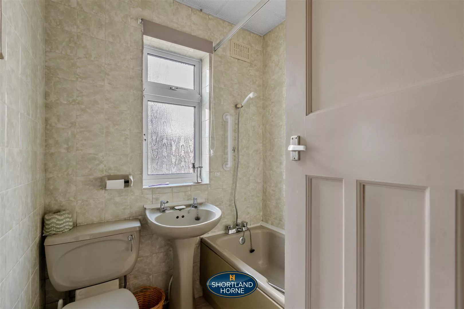 Upstairs, the sense of homeliness continues. The main bedroom, mirroring the lounge below, is generously proportioned with a bay window adding both light and character. The second bedroom is another comfortable double, while the third room lends itself to use as a nursery, home office or child’s bedroom. Completing this floor is the family bathroom, fitted with its original avocado suite and fully tiled, a nostalgic feature that many buyers may choose to update.