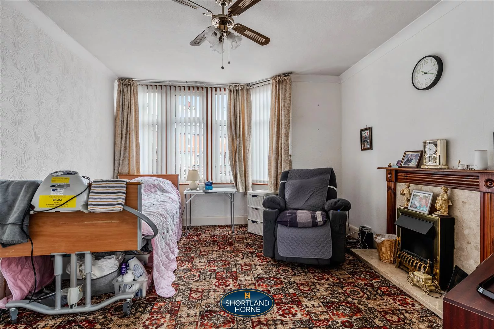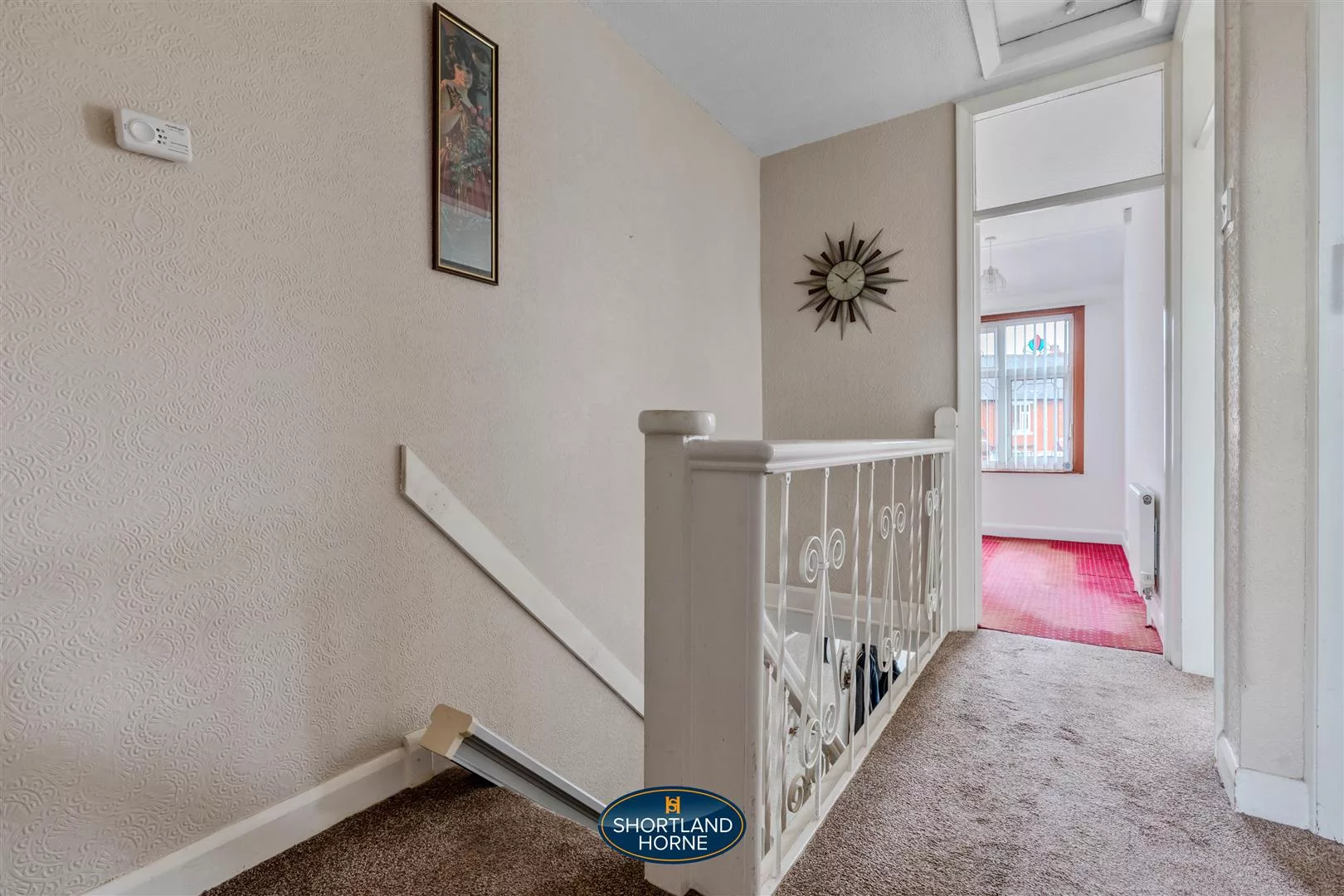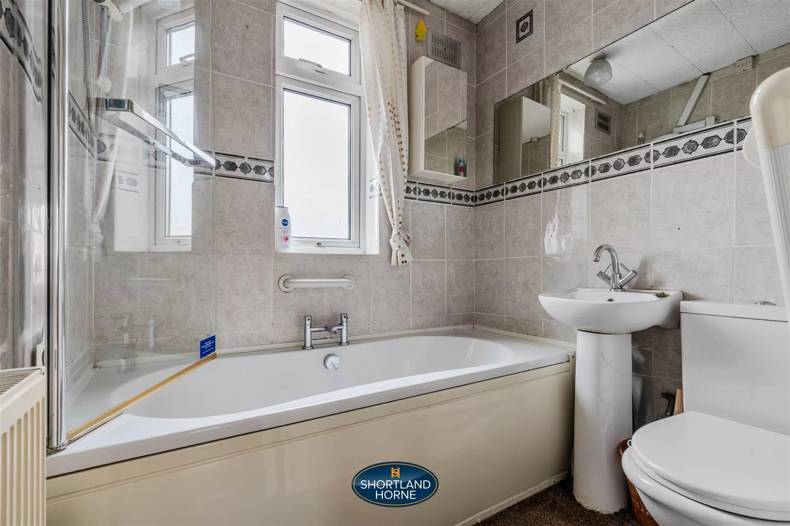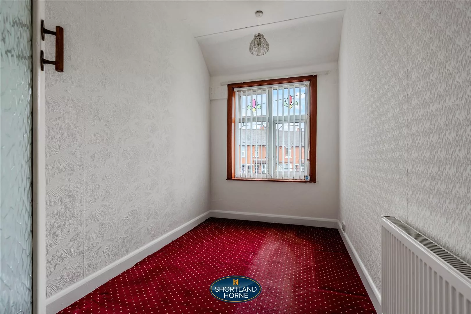 Upstairs, the soft carpet continues up the stairs and across the landing, leading to three comfortable bedrooms. The main bedroom is spacious and serene, offering plenty of room for a double bed and the potential for additional furniture or personal touches. The second bedroom, another generous double, features fitted wardrobes that make excellent use of space and ensure everything has its place. The third bedroom, smaller but full of versatility, would make an ideal home office or nursery, depending on your needs. Completing the upper floor is a fresh and functional family bathroom, fitted with a classic white three piece suite and a shower over the bath — perfect for both quick morning routines and relaxing evening soaks.