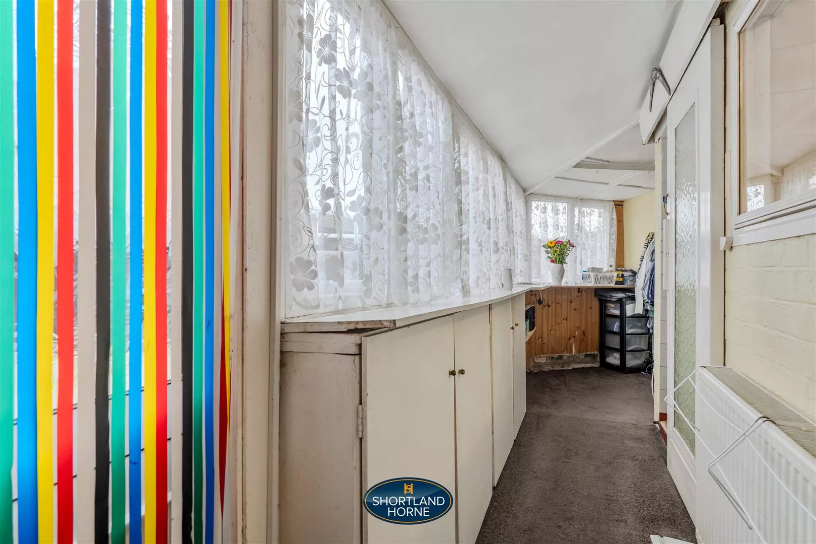 The kitchen lies just beyond which is presented with cushioned flooring and a tiled backsplash that adds a practical touch of character. There is space for everything you need, making daily cooking a pleasure rather than a chore. The ground floor also includes a handy W/C, cleverly designed to accommodate utilities, keeping the rest of the home organised and clutter-free. A bright and airy lean-to completes this level, opening out to the rear garden and drawing in even more light. It’s the perfect spot for morning coffee or a peaceful moment surrounded by the sounds of the outdoors.