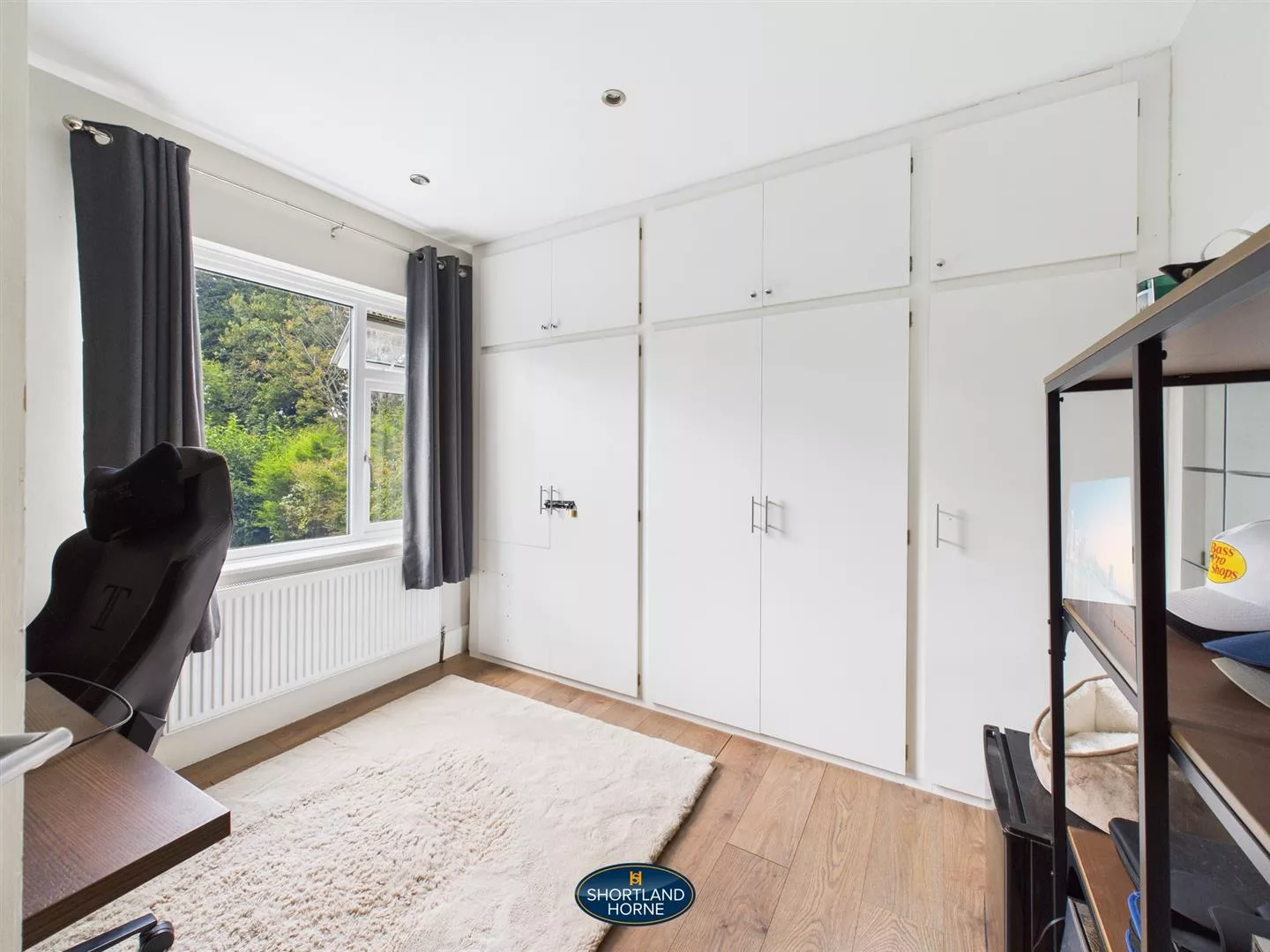 The second bedroom is another good sized double with a fitted wardrobe and a laminate floor that adds a sense of neat practicality. It is an ideal guest room or a comfortable space for a growing family. The third bedroom is a cosy single that would make a charming nursery, a quiet office or a little creative nook, depending on your needs.