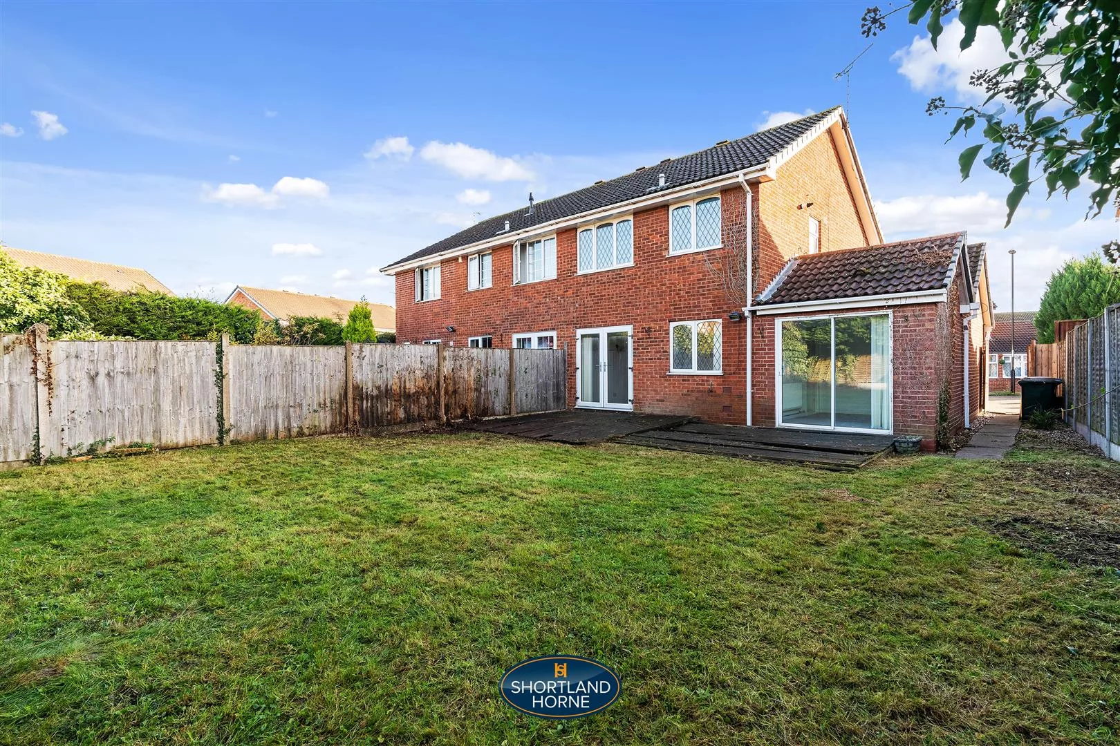Outside, the rear garden offers a private sanctuary. Enclosed and laid to lawn, it is a blank canvas for children’s play, summer barbecues or simple enjoyment of the outdoors. The single garage, fitted with an up and over door, provides practical storage or workspace, while the driveway at the front of the property comfortably accommodates two cars.