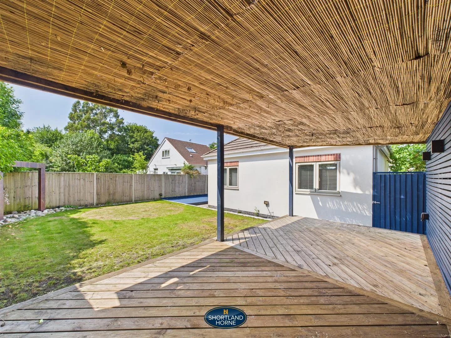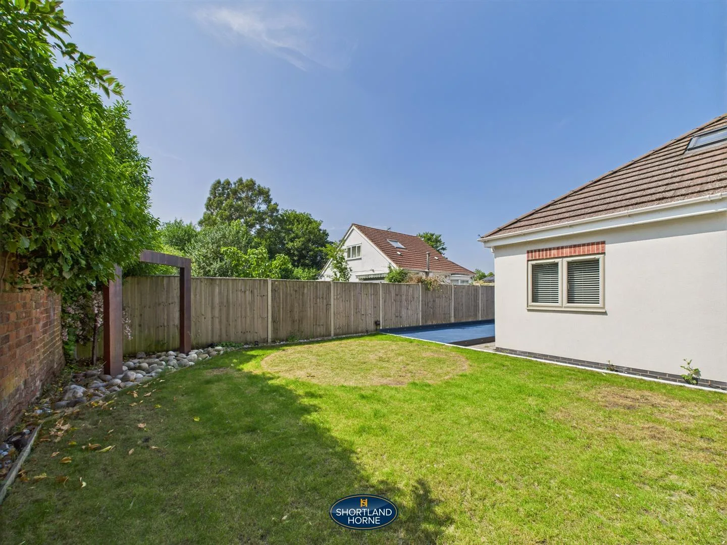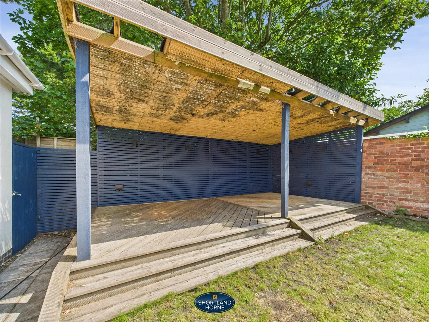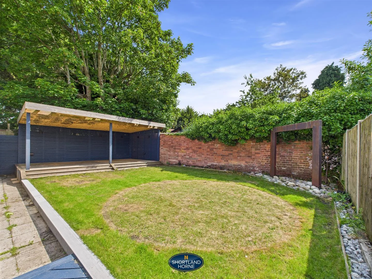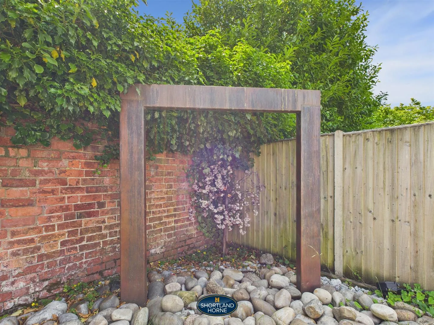Outside, the rear garden is a true sanctuary. Enclosed and mainly laid to lawn, it offers a secure and inviting space for children to play or for pets to roam freely. A raised decking area provides the perfect vantage point for outdoor dining and summer gatherings, while the gentle sound of the beautiful water feature adds a soothing backdrop to quiet afternoons. A sheltered sitting area creates an intimate corner to relax with a book or enjoy a morning coffee, protected from the elements and surrounded by greenery.