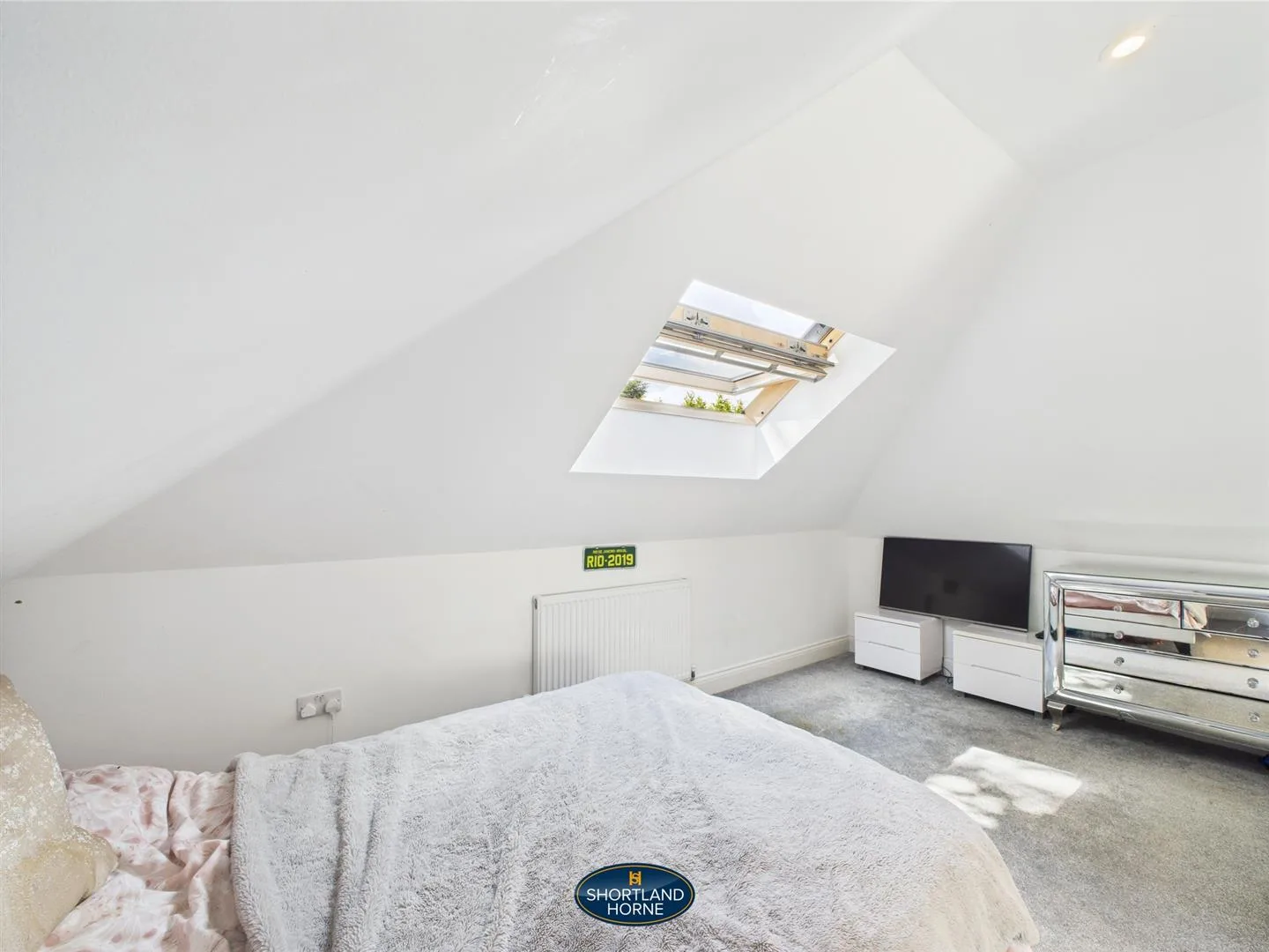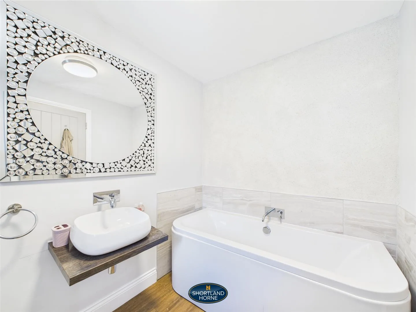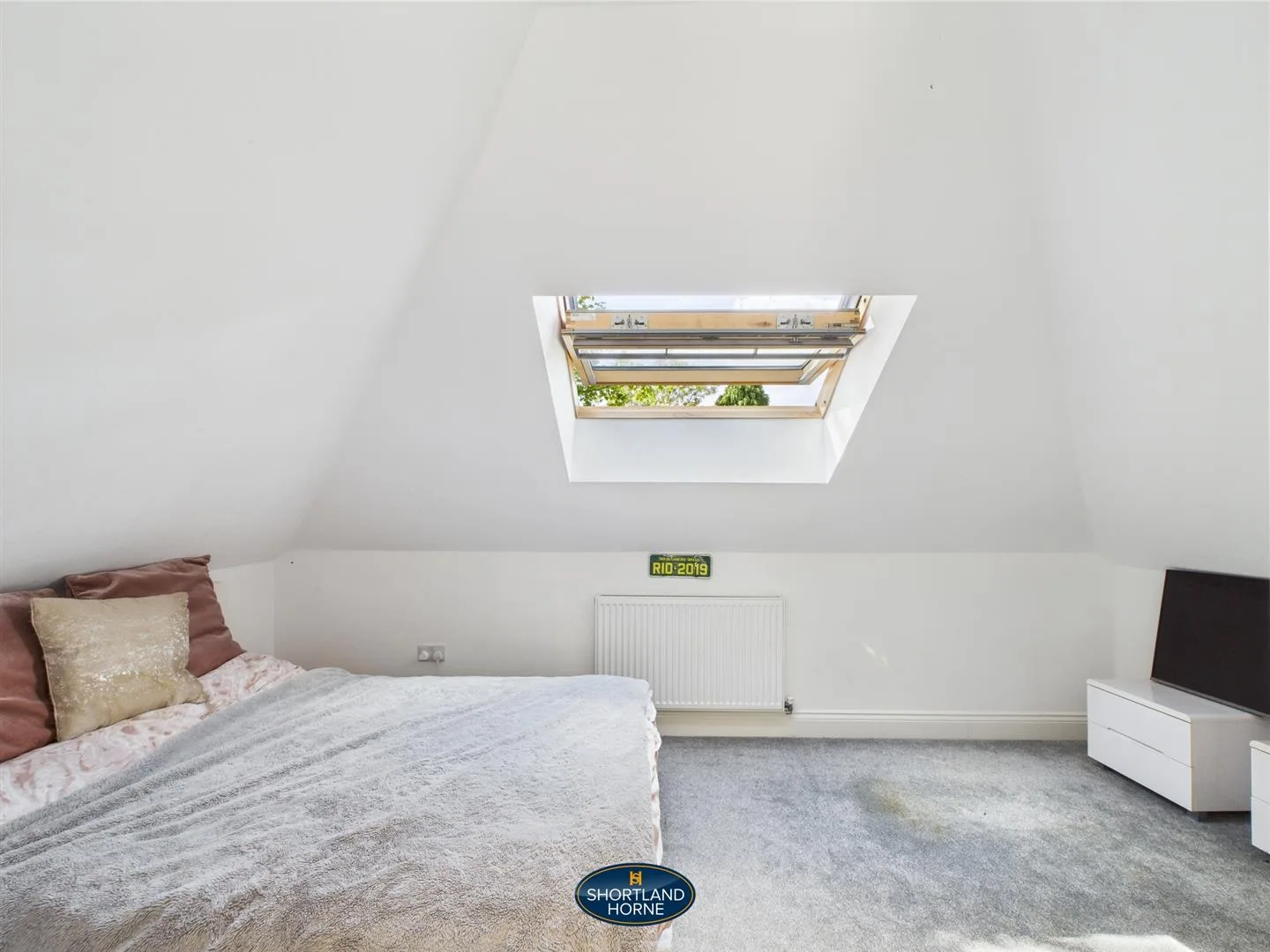 A staircase leads to the first floor, where a skylight window above the landing draws in an abundance of natural light, creating a bright and airy transition between spaces. The sense of light continues into the two further bedrooms. One features fitted wardrobes and ample room for a double bed, combining practicality with comfort, while the fourth bedroom is another well sized room that can flex to suit changing needs. The upstairs family bathroom also benefits from a skylight window, bathing the white three piece suite in daylight and enhancing the feeling of calm and privacy.