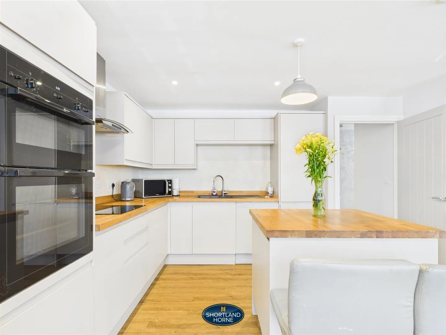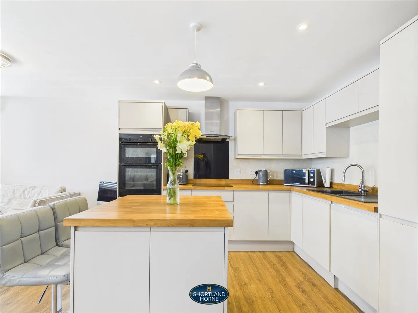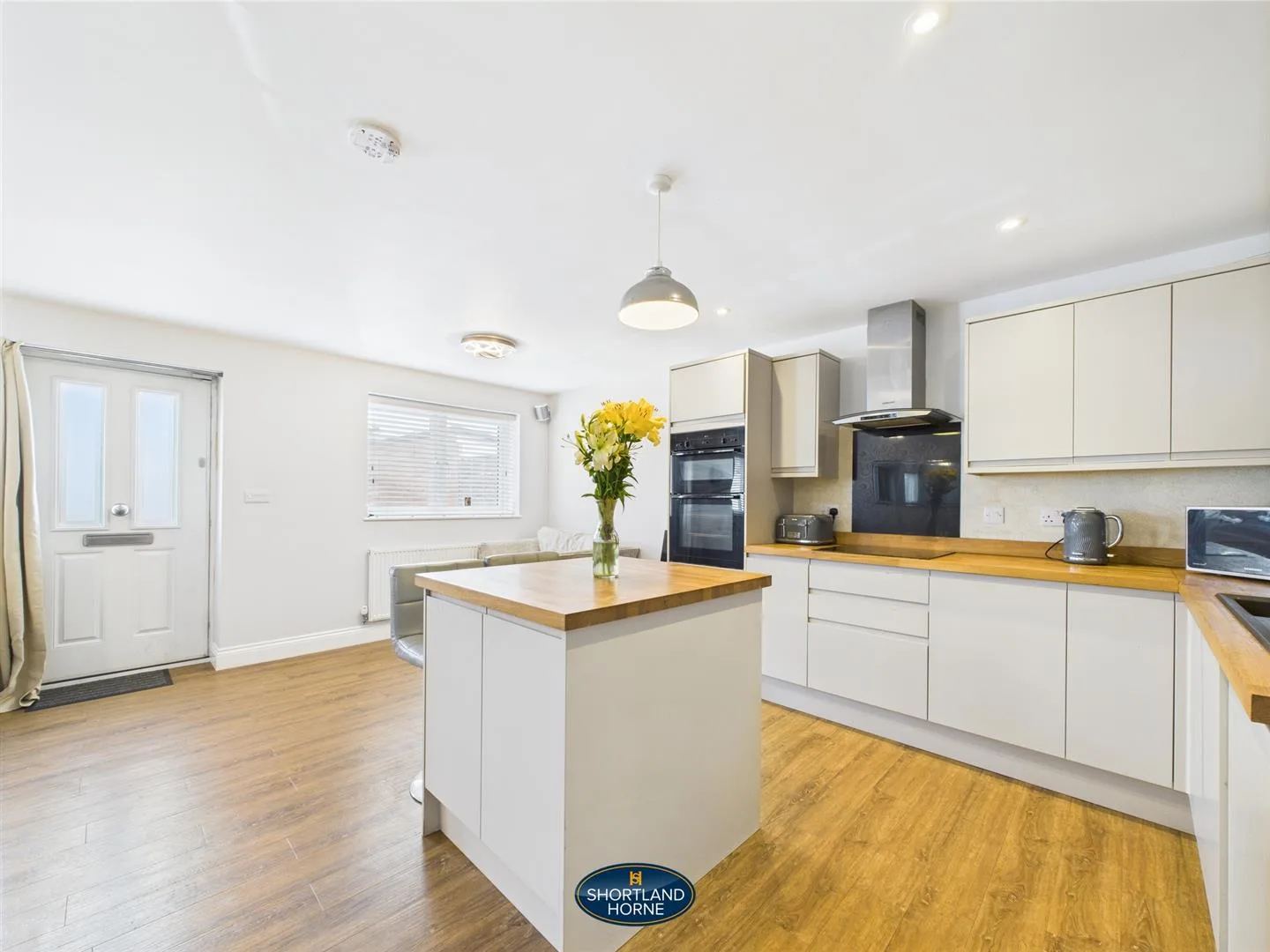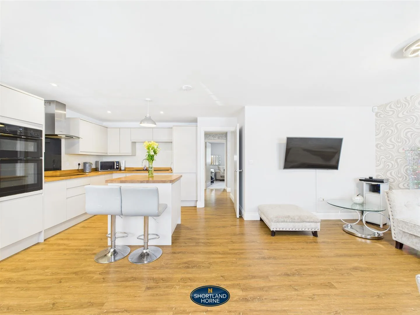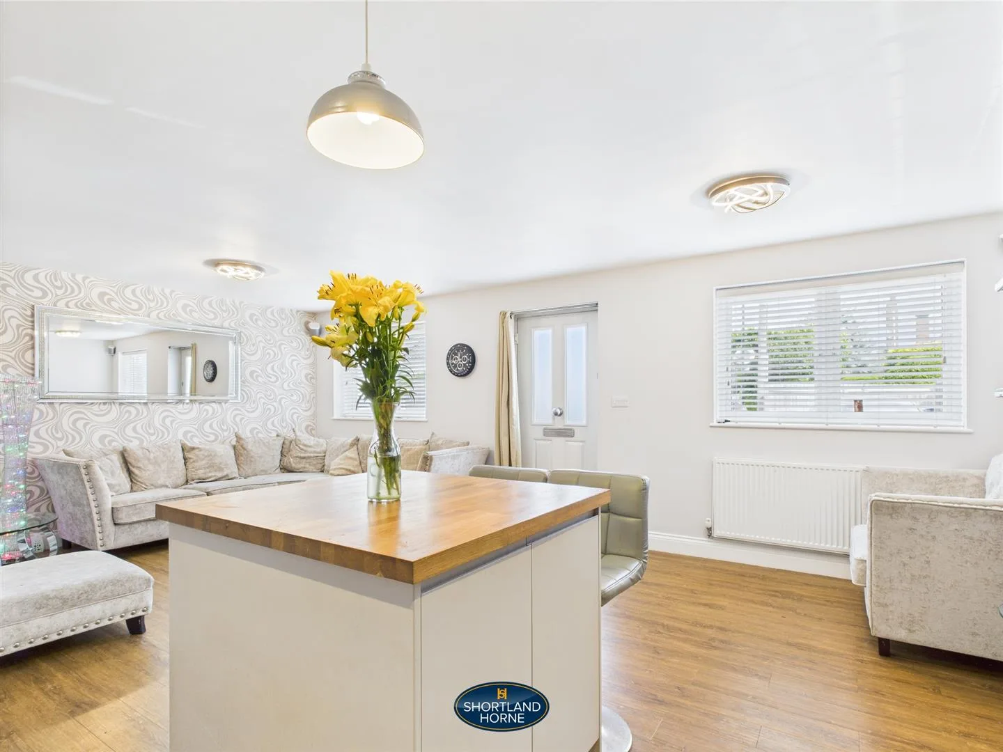 Step through the front door and you are greeted by a bright hallway finished with sleek laminate flooring that flows seamlessly into the heart of the home. The kitchen living area is an impressive open and sociable space designed for modern living. Expansive and filled with natural light, it effortlessly accommodates both comfortable seating and a dining arrangement, creating a setting where every day routines and special occasions blend together. The laminate flooring enhances the sense of continuity and space, while the layout invites conversation, whether you are preparing meals, hosting friends or enjoying a quiet evening in. The atmosphere is one of openness and flexibility, ready to adapt to the rhythm of family life.