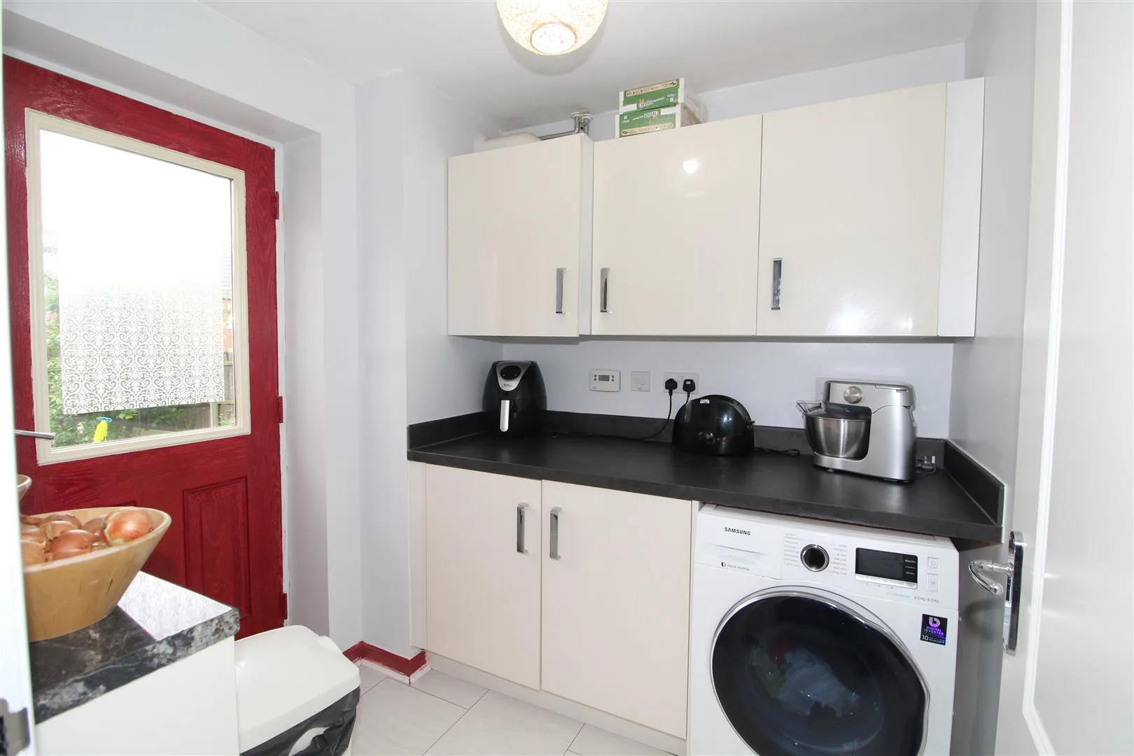 The property offers spacious and well planned accommodation throughout. To the ground floor, there is a generous lounge with French doors opening onto the rear garden, creating a bright and welcoming living space. The open plan kitchen and dining area provides ample storage with a range of base and eye level units, along with a combination of freestanding and integrated appliances. A separate utility room and convenient downstairs W.C complete the ground floor.