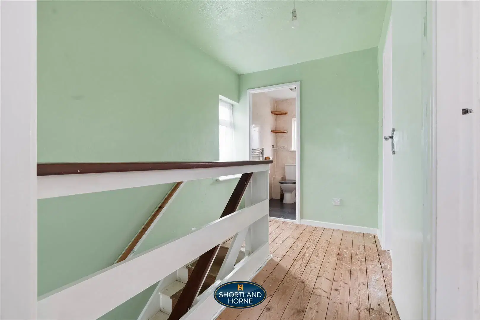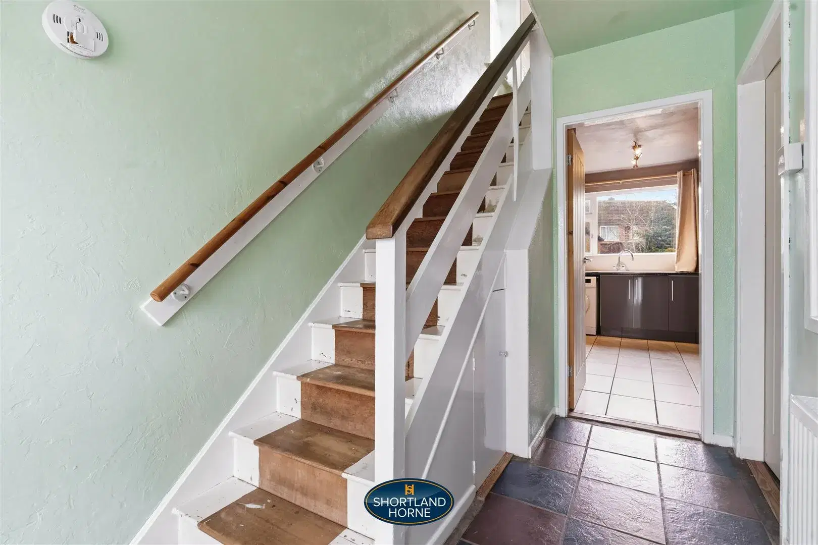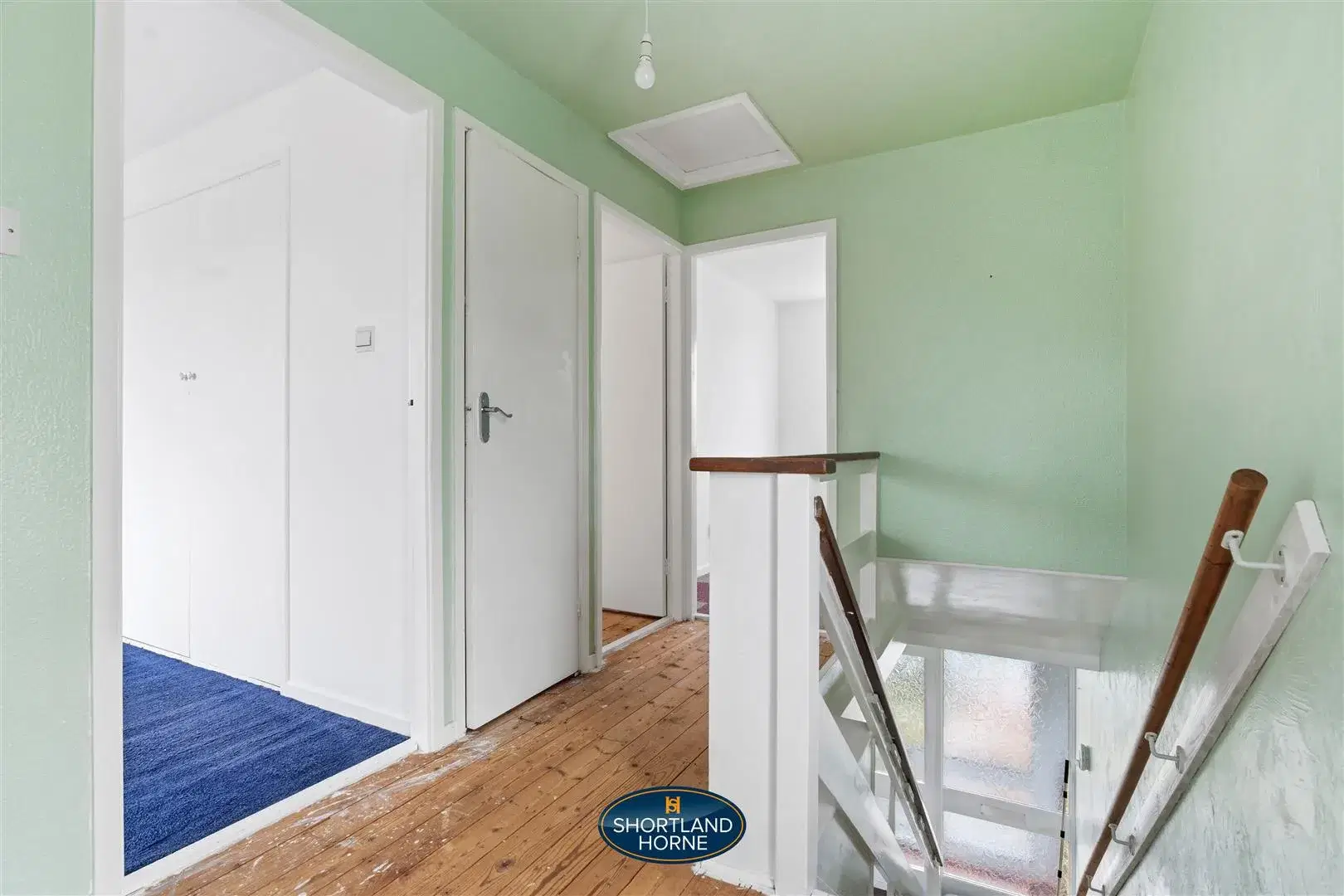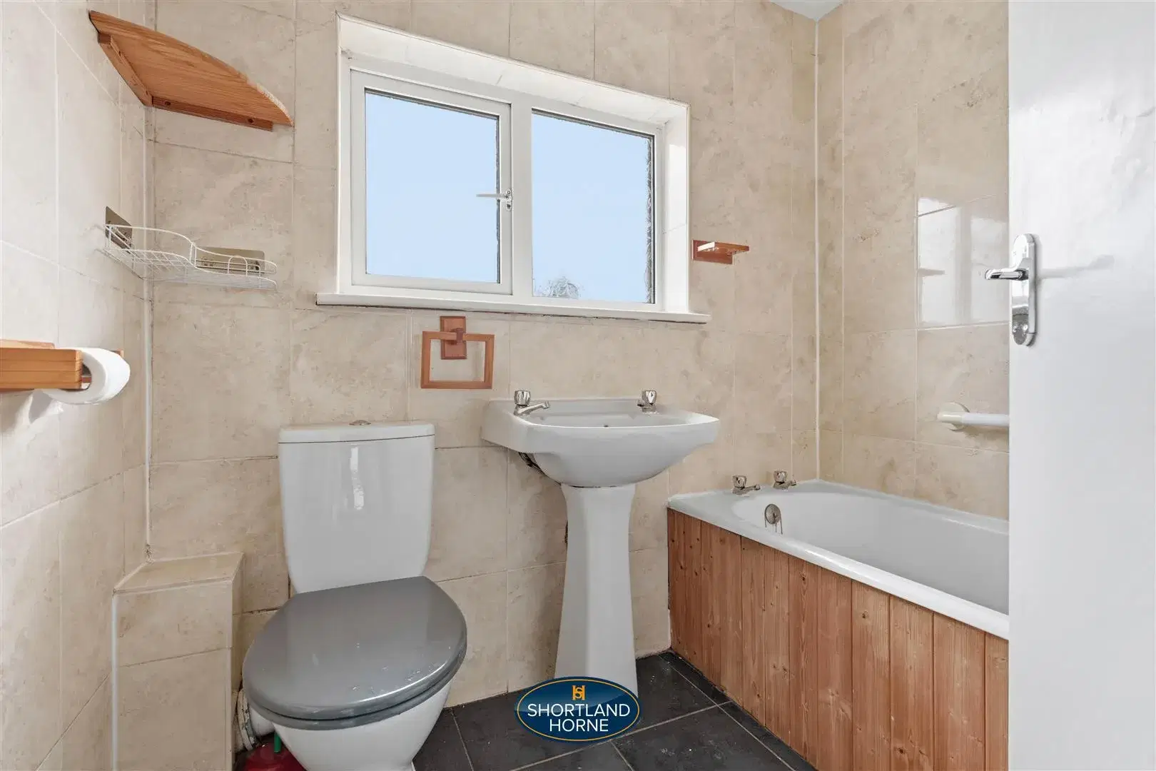 Upstairs, each bedroom features built-in wardrobes that cleverly blend style with storage. The front-facing master comfortably houses a double bed while the second double looks out over the tranquil garden. The third bedroom is a versatile space perfect for a nursery, office, or hobby room. The family bathroom is classic and functional ready for your vision to modernise or refresh.