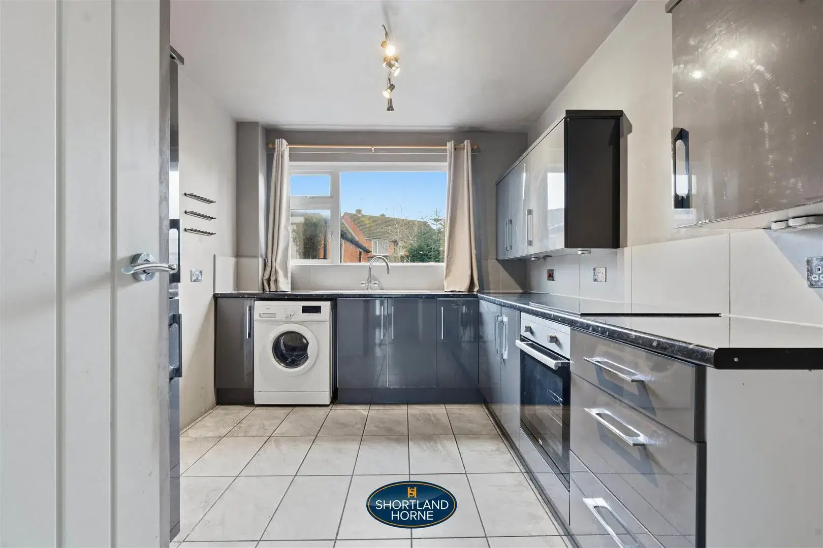 The kitchen combines modern style with practical living. Dark grey high-gloss cabinets reflect the light as it moves across the room, while an integrated oven, hob, and sink under the window ensure cooking feels more like a pleasure than a chore. A side door leads straight to the driveway, making school runs, groceries, or morning commutes effortless. Though some areas of the home hint at their age and could benefit from personal touches, this gives the perfect canvas to shape a home that is uniquely yours.