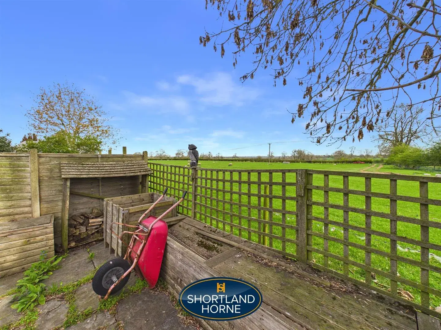 To the rear, the garden is a standout feature of the home. Generous in size and thoughtfully arranged with both decking and lawn, it provides space for everything from outdoor dining to children’s play. As you step outside, the view opens up across fields beyond, where sheep move slowly through the landscape and the horizon feels wide and uninterrupted. It is a setting that changes with the seasons, from fresh greens in spring to golden tones later in the year, offering a constant connection to nature.
