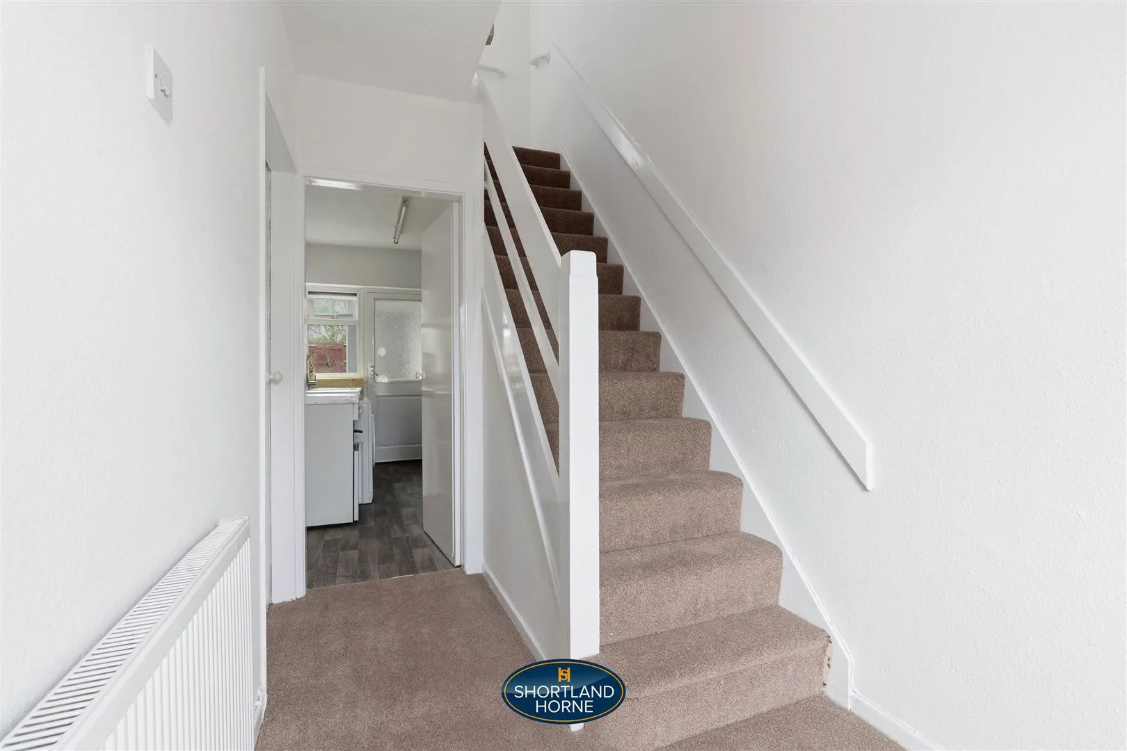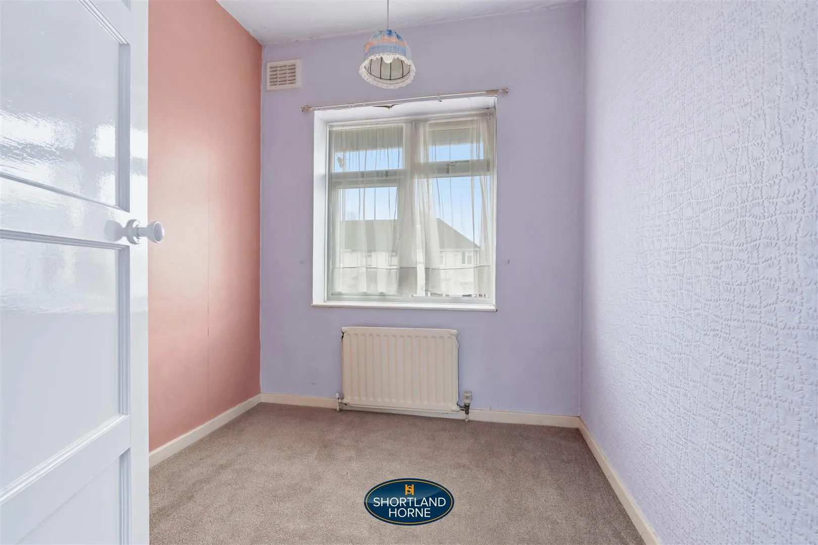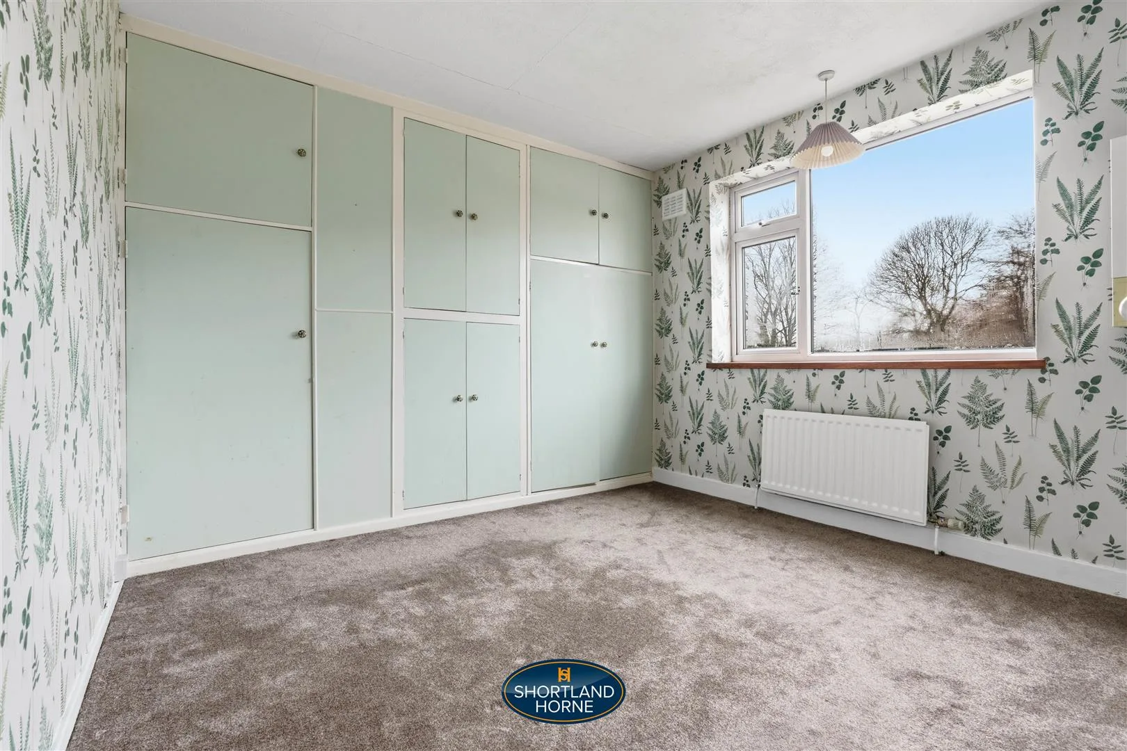 Upstairs, the carpeted staircase leads to a comfortable landing and three well proportioned bedrooms. The main bedroom sits at the front of the home and enjoys its own bay window, giving the room a light and airy feel while easily accommodating a double bed. The second bedroom is another generous double and benefits from built in wardrobes that keep everything neatly tucked away. The third bedroom offers flexibility and works beautifully as a nursery, guest room or quiet home office.
