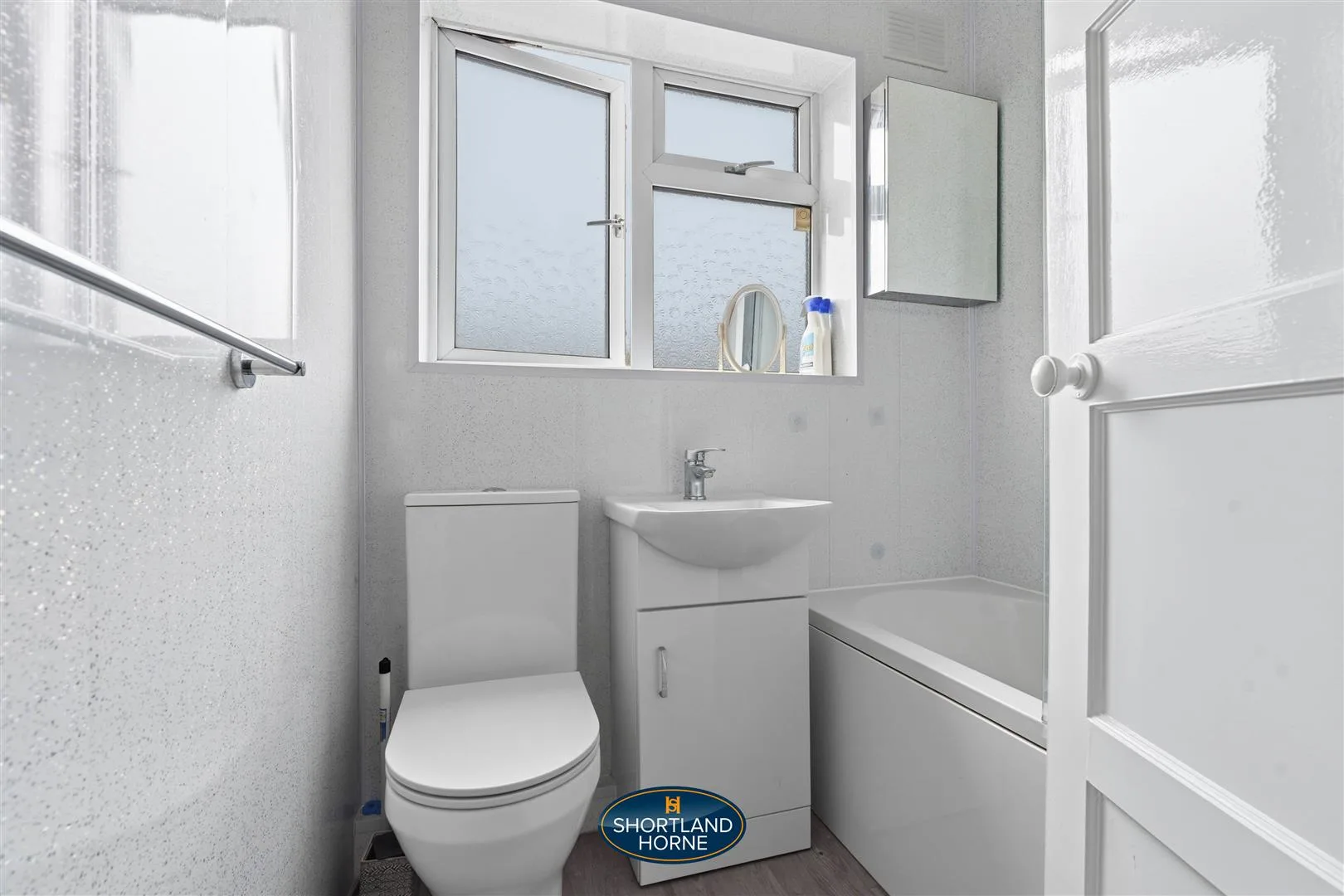 The family bathroom has recently been updated in 2024 and feels fresh, clean and modern. A white suite is complemented by a smart vanity unit beneath the sink, offering both style and useful storage.