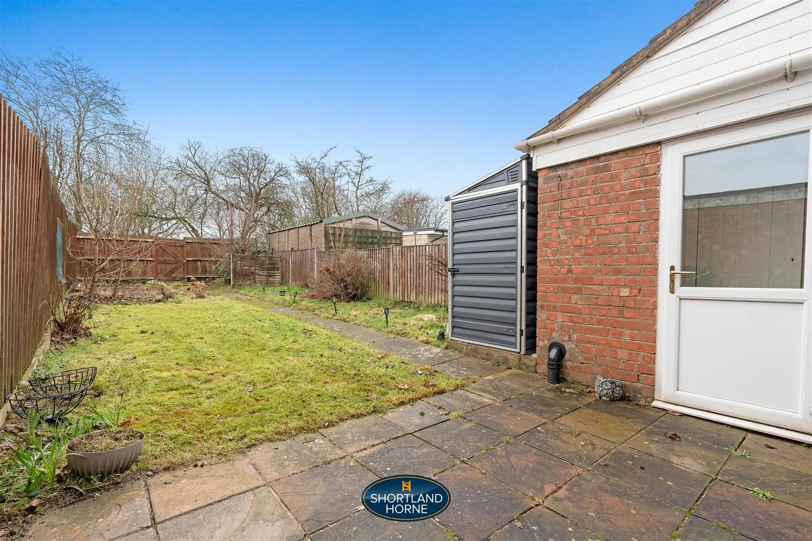 The garden is where this home truly reveals its peaceful side. A patio area greets you just beyond the French doors, perfect for morning coffee or an evening drink after a long day. The lawn stretches beyond, framed by established shrub borders and secure fencing. With the Scouts field behind and no homes overlooking, the garden feels wonderfully private and attracts an abundance of birds, filling the air with gentle birdsong.