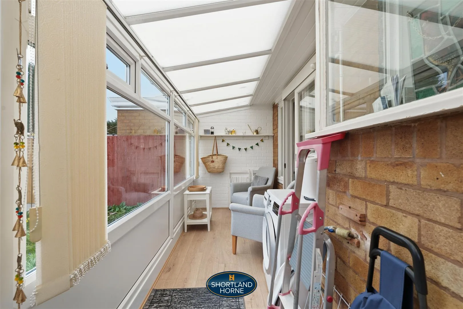 The conservatory is a delightful retreat that looks out across the garden, a place where the changing seasons become part of everyday life. There is ample space for comfortable seating alongside a practical utility area, complete with plumbing for a washing machine. Sunlight pours through the surrounding glass, and from here you can step directly outside to the garden or access the driveway, making the space wonderfully versatile.