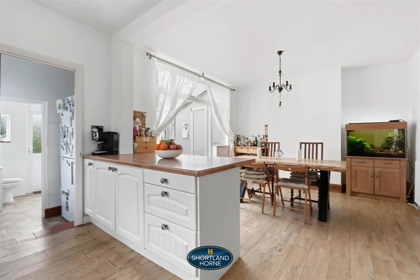 Step inside and the welcome is immediate. The hallway, dressed in beautiful Minton tiled flooring, feels like the opening line of a good novel. Light spills in, bouncing off the walls and guiding you towards the heart of the home. There is a sense of proportion here that is rare. Wide hallways, a generous landing, rooms that breathe. Storage is plentiful and thoughtfully tucked away, because real life needs space for shoes, coats and the occasional clutter.