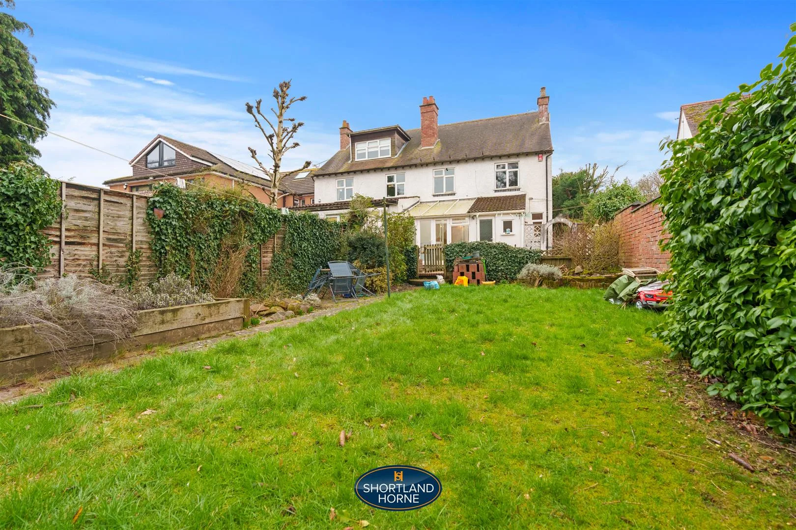 Outside, the garden unfolds as a private escape. A patio for summer suppers, a lawn for play or quiet afternoon reading, and mature shrubbery that wraps the space in greenery and calm. It feels established, loved, and ready for the next chapter.