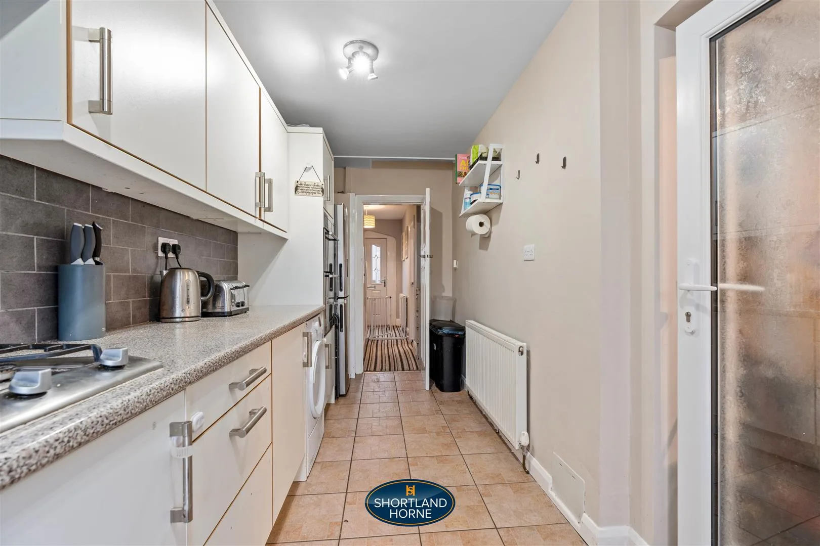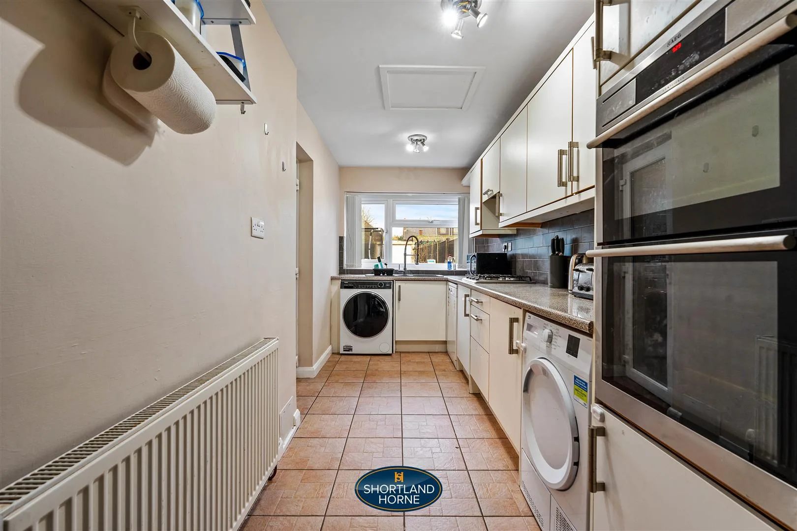 The extended galley kitchen sits at the heart of the home, blending practicality with charm. Lined with an abundance of cream units and fitted with an integrated hob, extractor and double oven, it offers generous preparation space for everything from quick weekday breakfasts to ambitious weekend cooking experiments. A window frames a delightful view of the garden, allowing you to keep an eye on children or pets playing outside while you prepare meals, adding a gentle sense of togetherness to everyday routines.