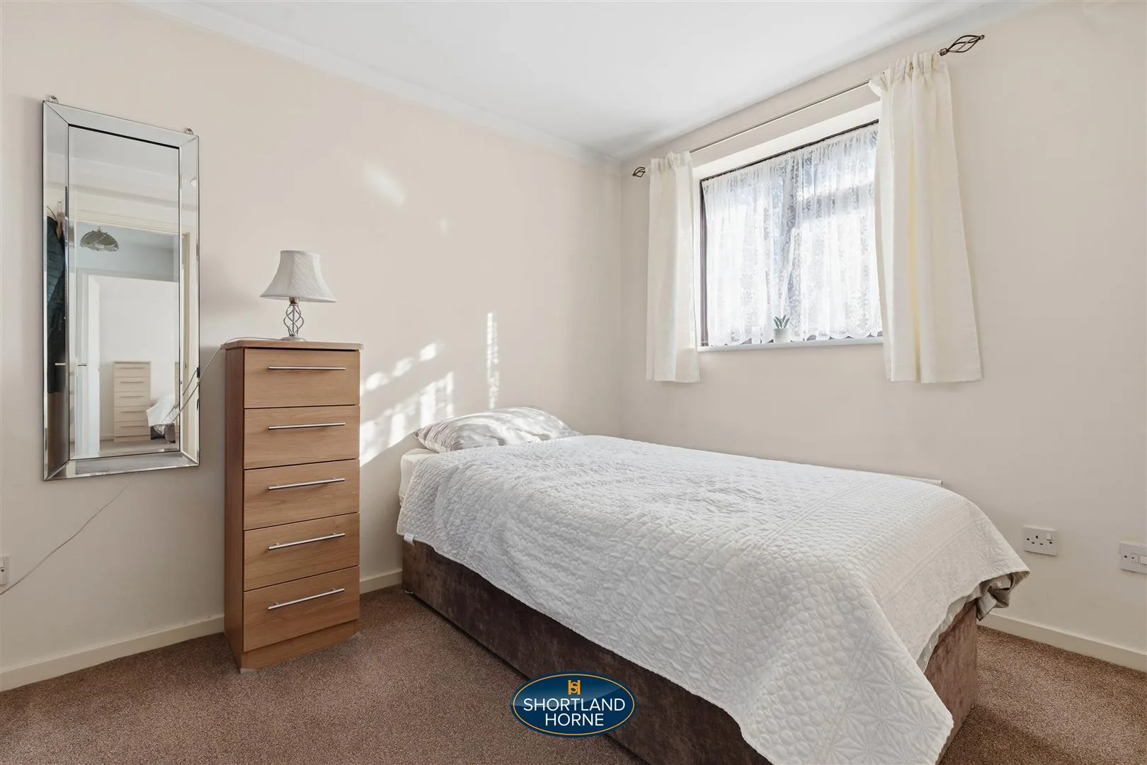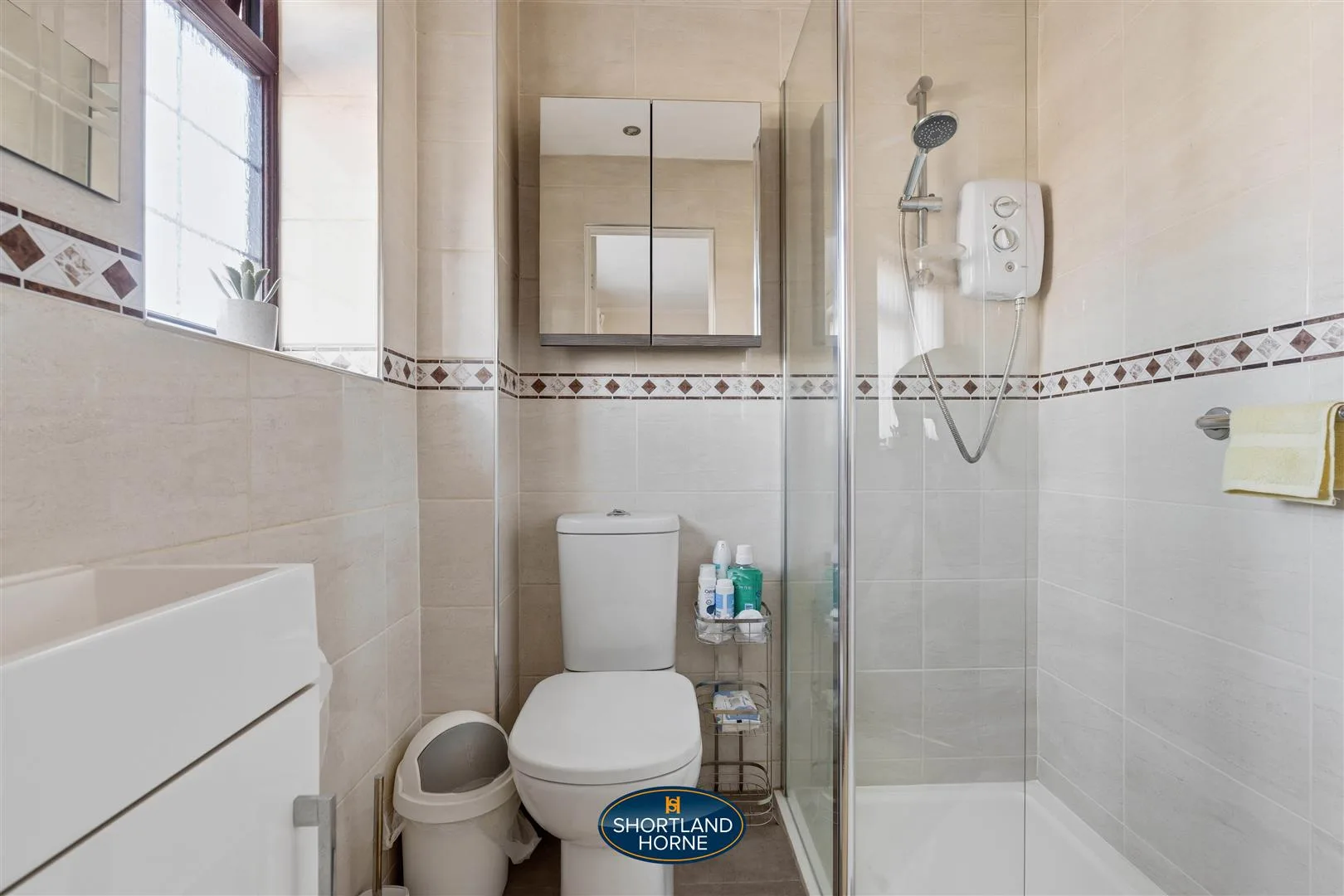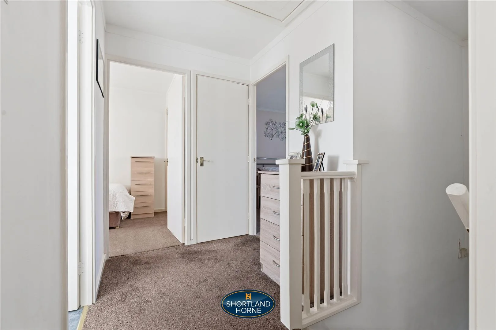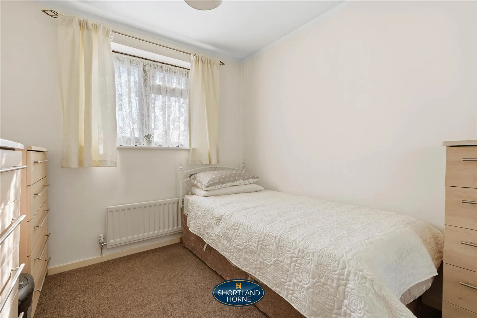Upstairs, three restful bedrooms await, all carpeted for comfort. The principal bedroom is a private retreat with space for a double bed, wardrobe, and its own en-suite shower room. The second bedroom is a good-sized double with built-in storage, while the third stretches over the garage, offering surprising versatility for a home office, guest room, or cosy hideaway. The family bathroom is fresh and inviting, with crisp tiles, a white three-piece suite, and a shower over the bath, balancing style and functionality effortlessly.