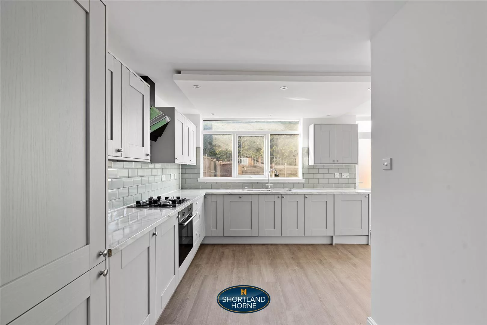 Upstairs, carpeted stairs and landing lead to four comfortable bedrooms. The principal bedroom is generously proportioned, featuring a bay window that fills the room with soft natural light and a fitted wardrobe with glass doors that reflects the airy, contemporary feel of the home. The bathroom is en-suite to main bedroom. Bedroom two is a good-sized double, while bedroom three, slightly larger than a typical third bedroom, could easily serve as a home office or nursery. Bedroom four completes the suite, providing flexibility for a growing family or visiting guests. The first floor is completed by a sleek shower room, each refurbished with modern fixtures and finishes.