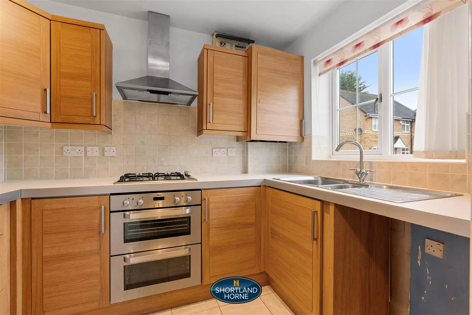 The kitchen is both practical and contemporary, featuring oak shaker-style units, a tiled floor, and a matching tiled splashback. A Zanussi built-in double oven, four-ring gas hob, and extractor ensure cooking is both efficient and enjoyable, while the recent addition of a new kitchen tap adds a modern touch. The square layout provides ample space for meal preparation, storage, and casual dining, combining functionality with a clean, timeless design.