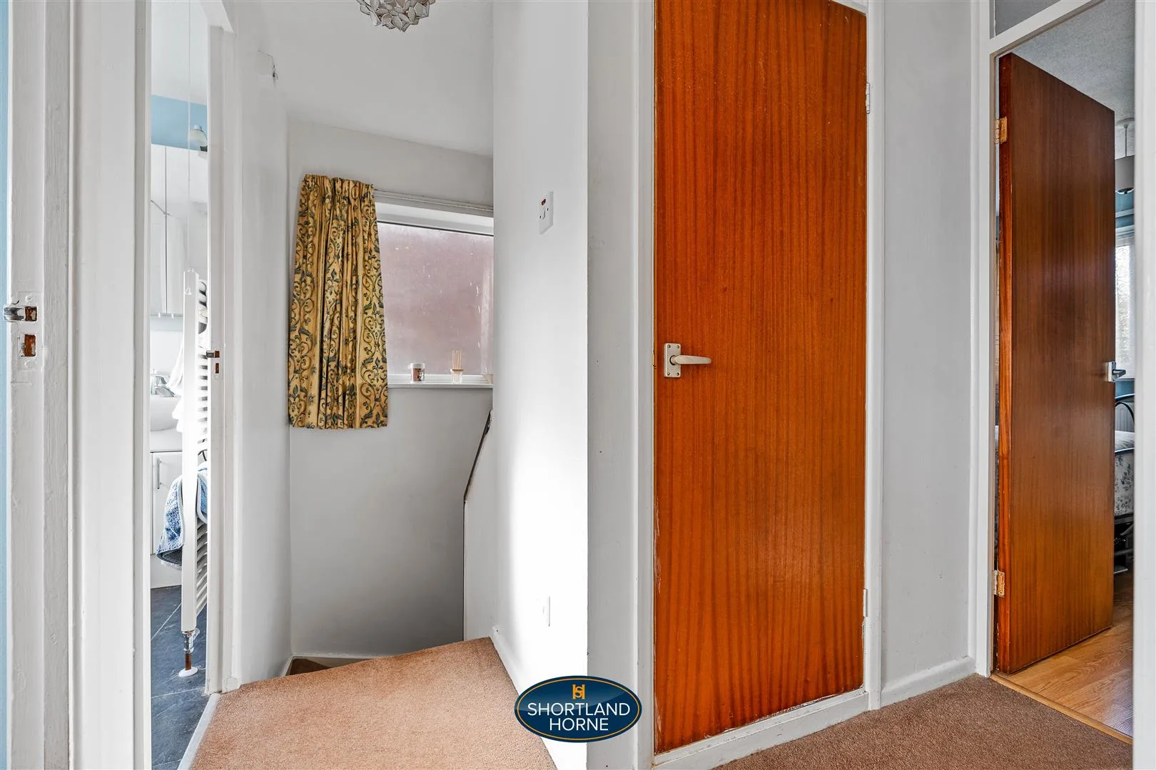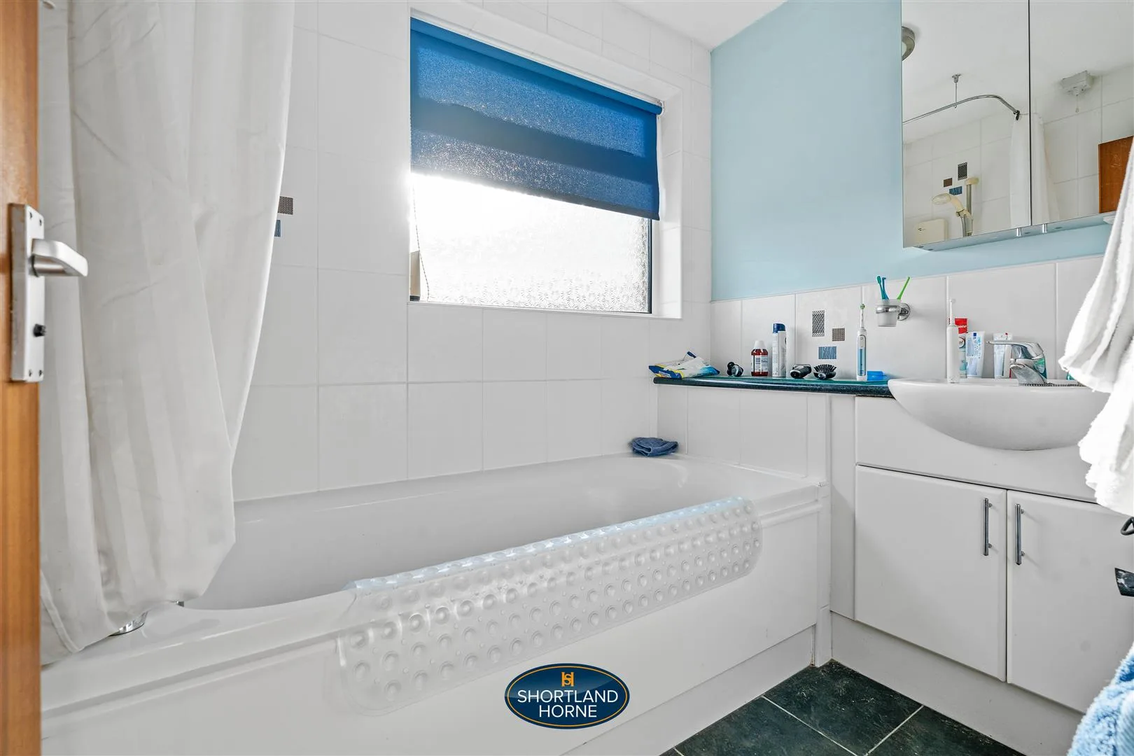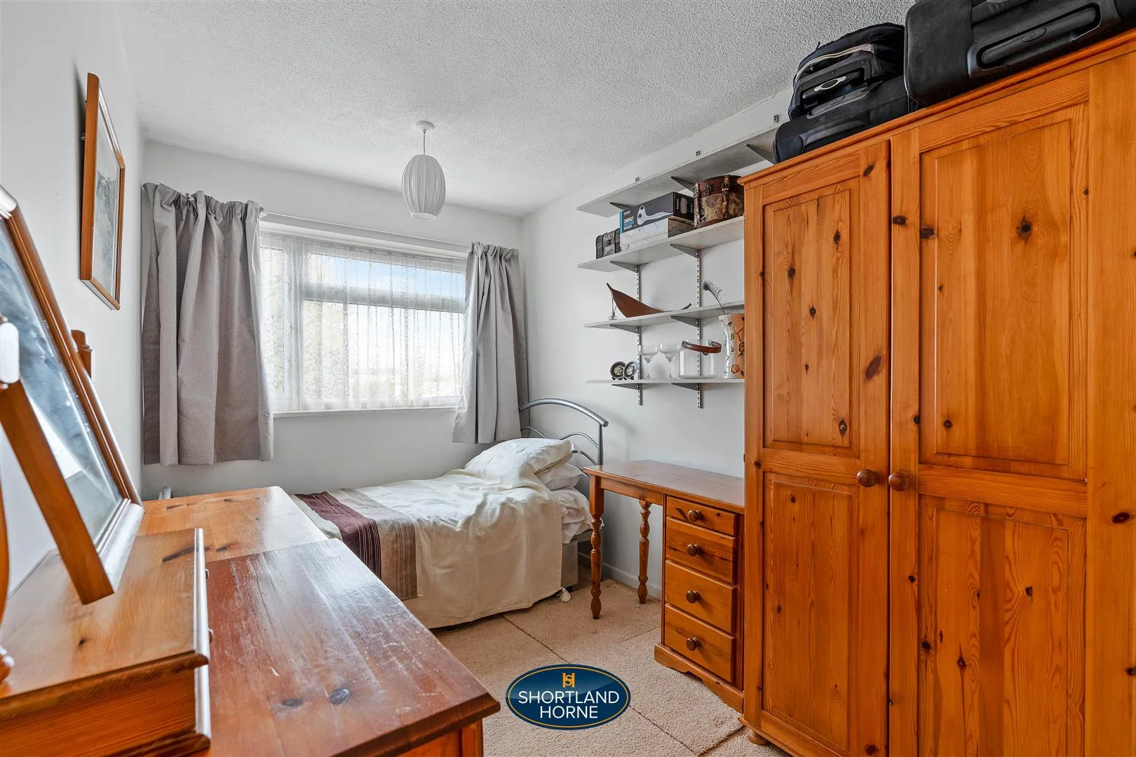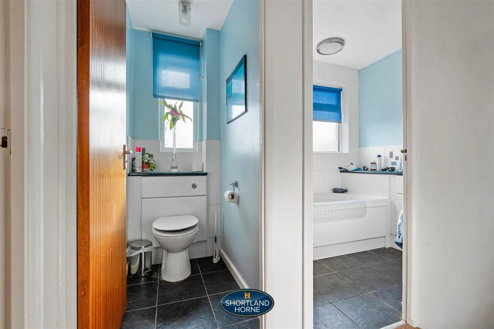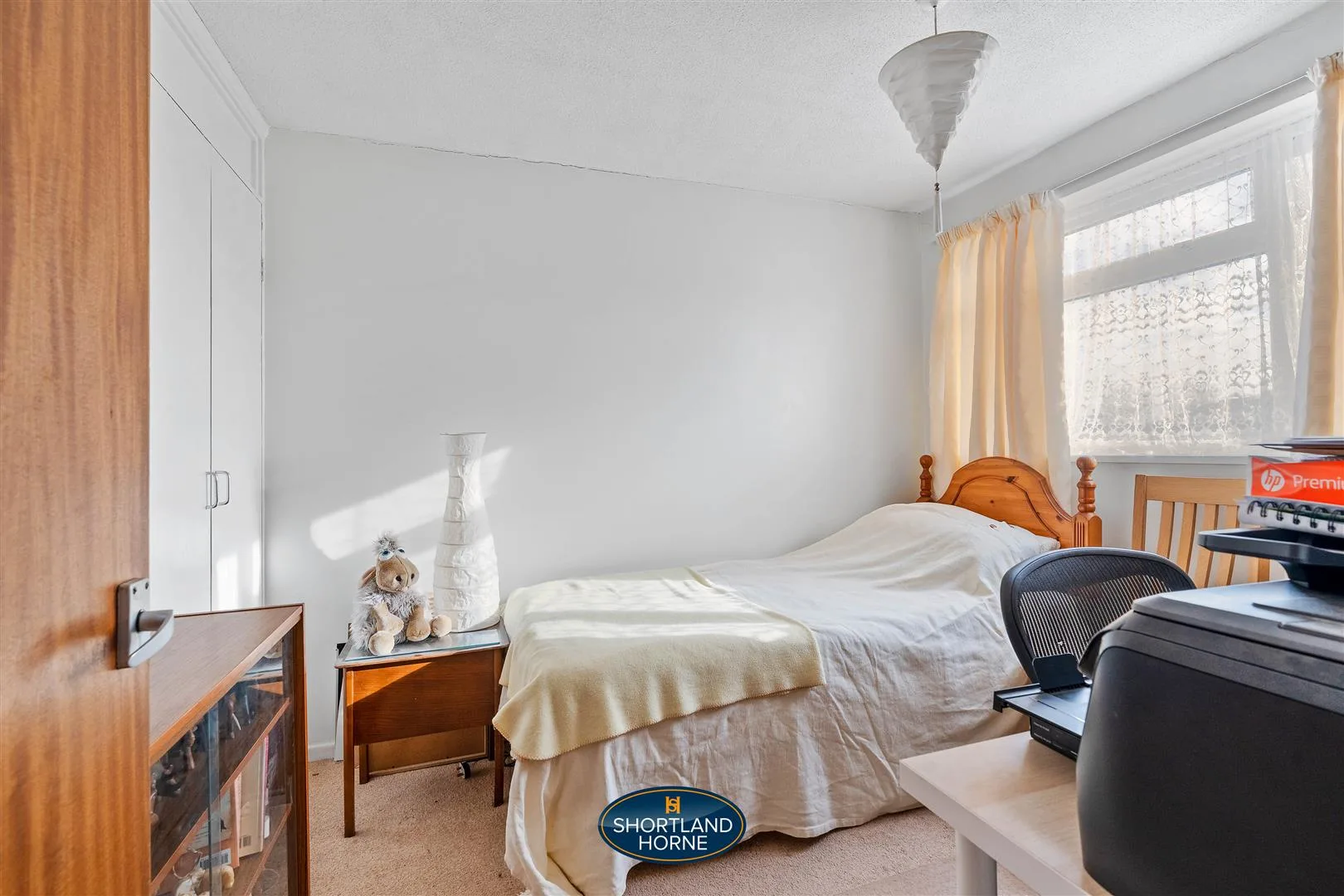 Upstairs, the property continues to impress with three well-proportioned bedrooms. The principal bedroom is positioned at the rear of the home, enjoying a large window that frames pleasant garden views and fills the room with natural light, complemented by built-in sliding wardrobes providing excellent storage. The second bedroom is another comfortable double room located at the front of the property and also benefits from fitted wardrobes. The third bedroom is notably generous for a home of this style and offers superb flexibility, making it equally suited as a nursery, home office or guest bedroom. The family shower room is fully tiled and fitted with a bath with shower over and vanity sink unit, while a separate WC adds further everyday convenience.