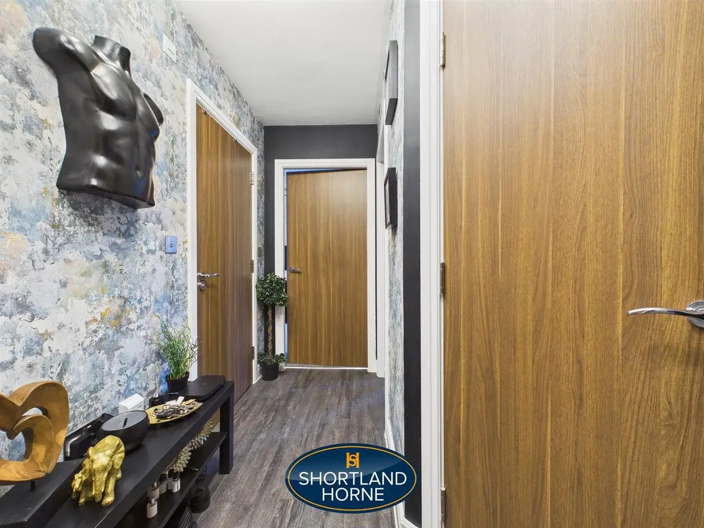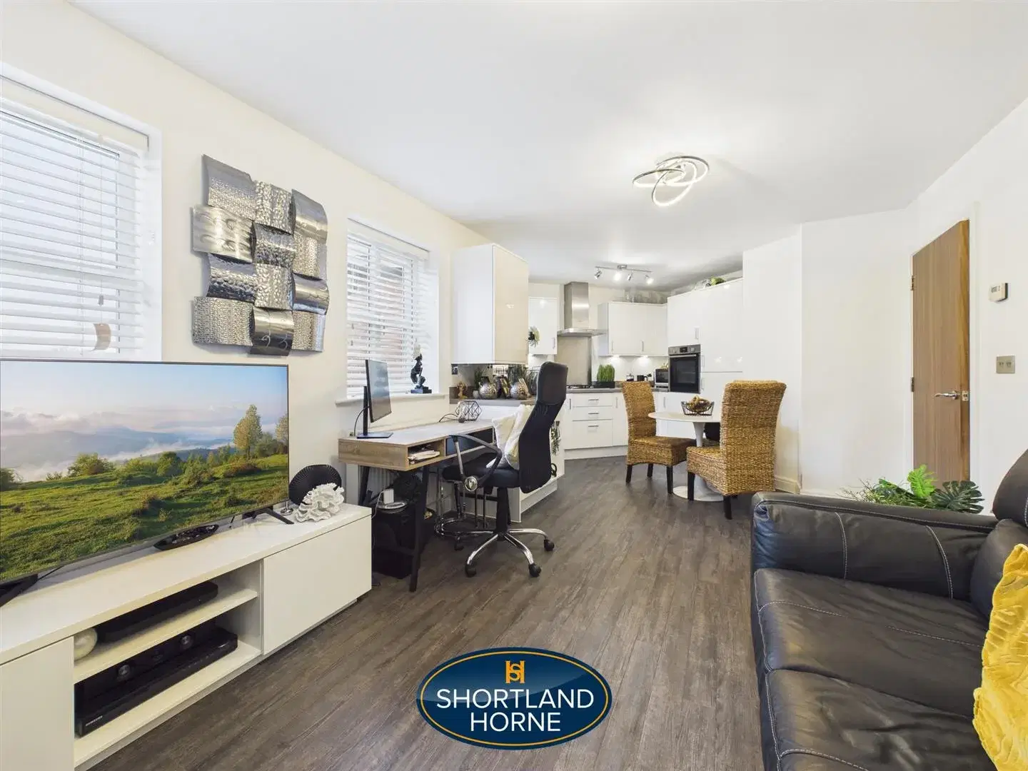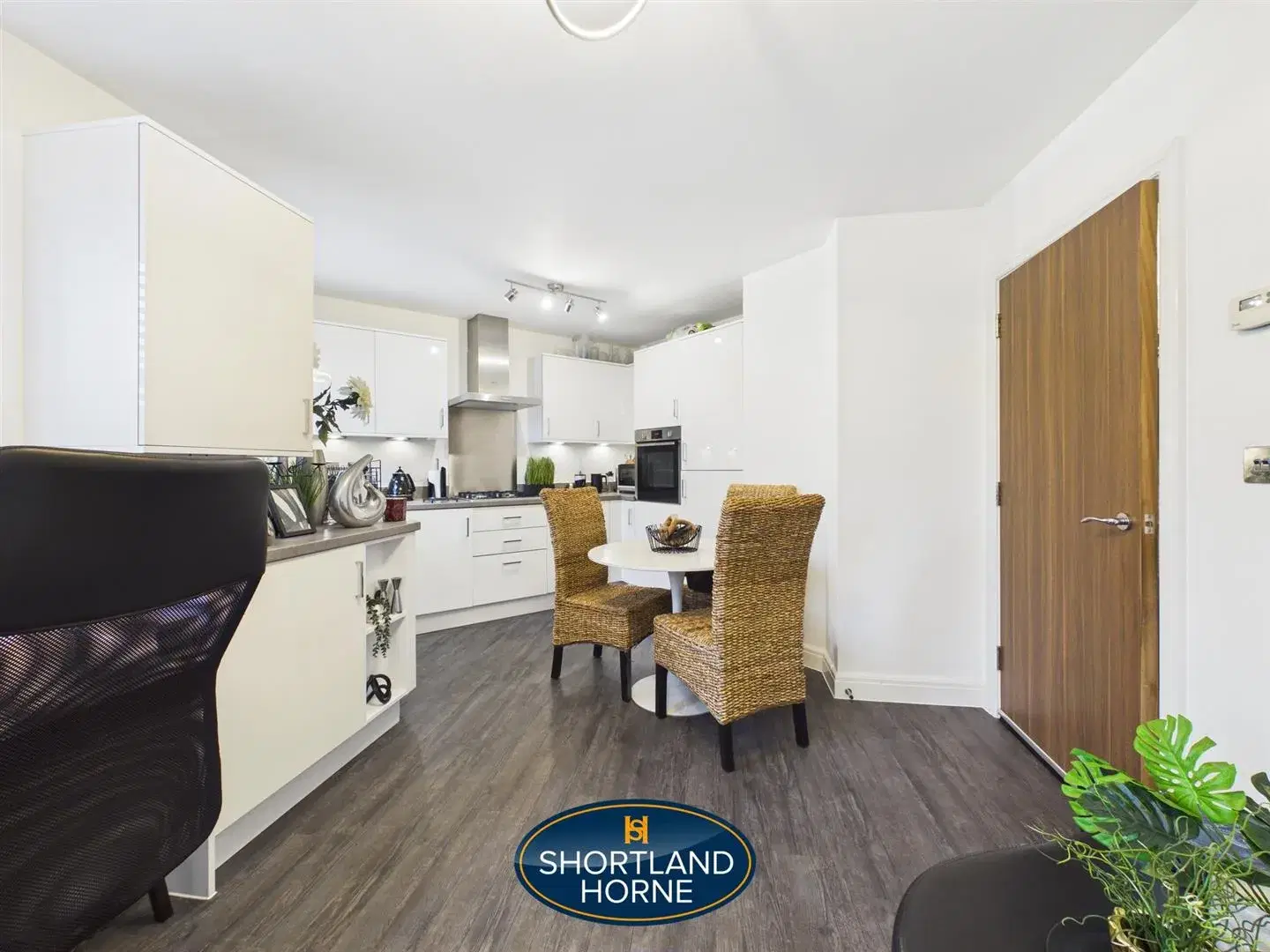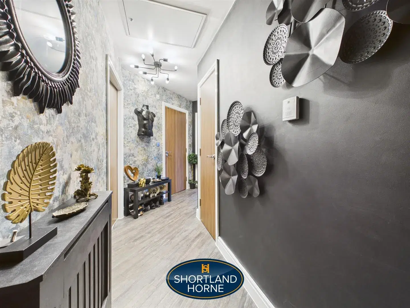 And then, it opens up. The heart of the home arrives in one smooth, flowing moment. An open plan kitchen, dining and lounge space that immediately draws you in and makes you imagine slow mornings with sunlight spilling across the floor and evenings where the conversation lingers a little longer than planned. The kitchen is a sleek, modern statement, fitted with premium NEFF integrated appliances including dishwasher, washer dryer, fridge freezer and wall oven, all designed to make everyday living feel just that bit more effortless. There is generous storage too, the kind that quietly surprises you in a flat, giving everything its place without ever intruding on the clean, contemporary feel.
